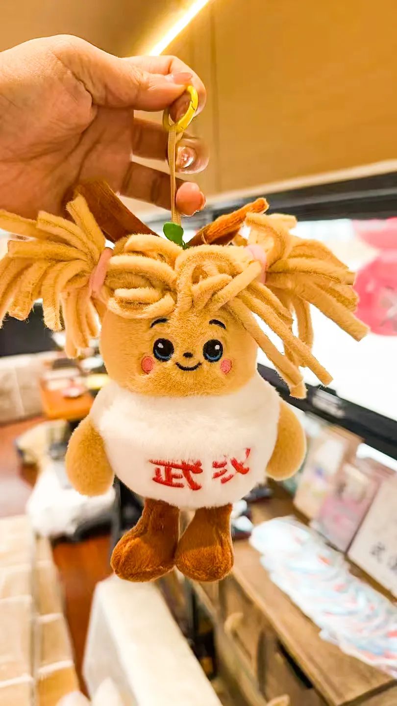 武汉美食热干面也被做成了挂件,一头棕色的头发做成了热干面根根分明的模样。刘洋表示,这两款挂件目前都是1.0版本,无声音功能,后期设计的2.0版本将增设声音功能,与人们情感共鸣。