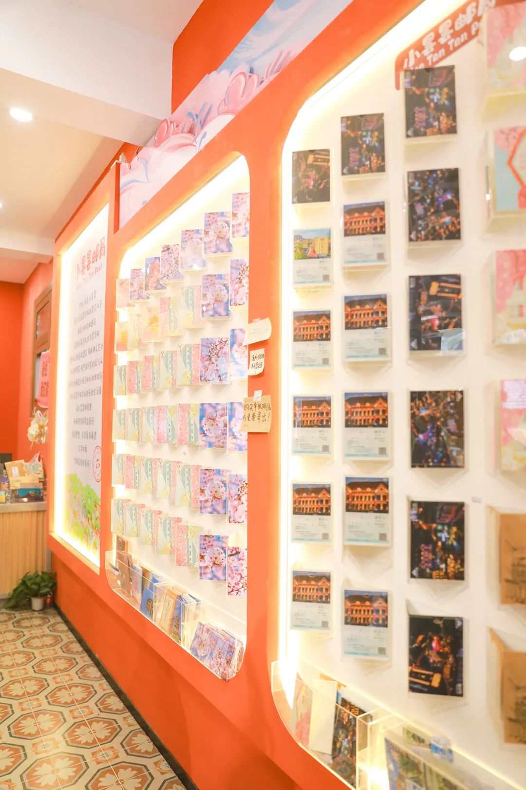 店里最显眼的当数明信片,进门右手边整面墙上摆放着250张明信片,有武汉地标风景、特色美食等,风格从写实到漫画卡通风都有。游客可以选购心仪的明信片带回家或是寄给亲友。