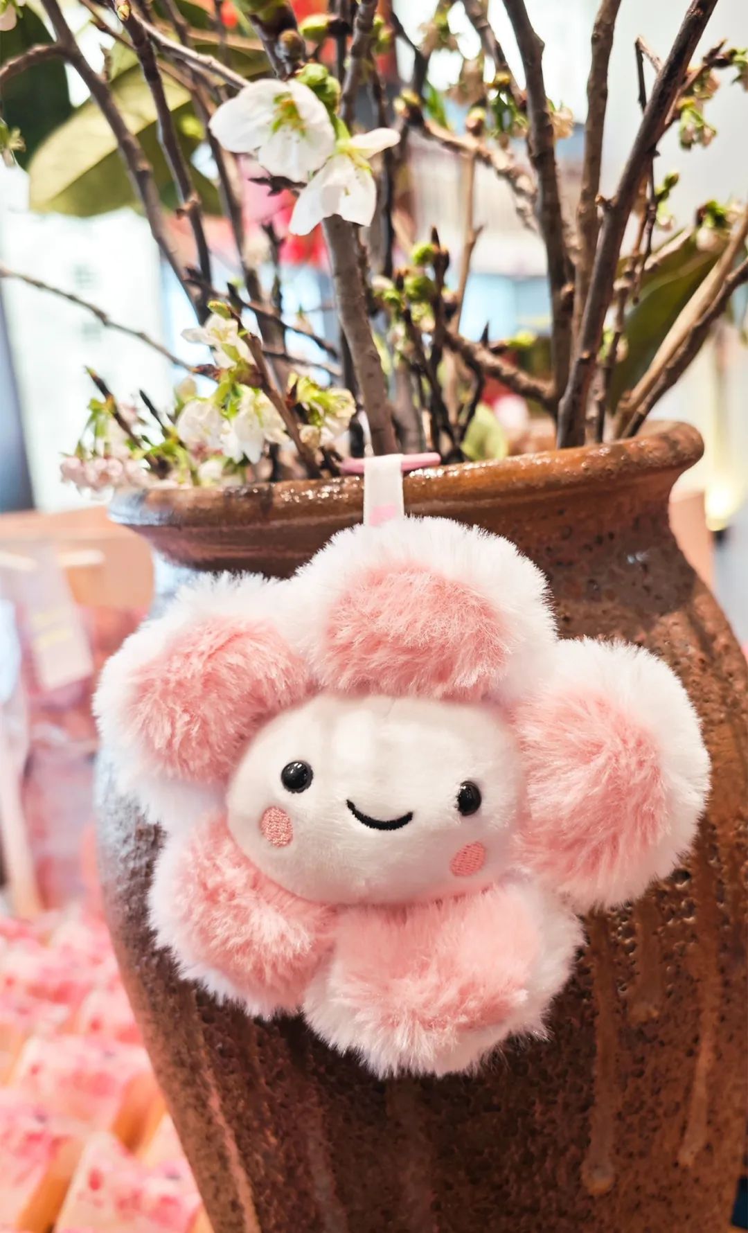 “樱你有钱花”挂件以樱花为创作原型,花瓣选取粉红色,花蕊部分为白色,以笑脸的模样传递樱花之美。