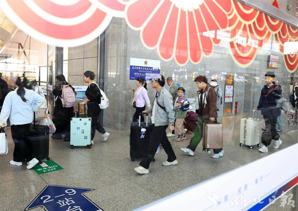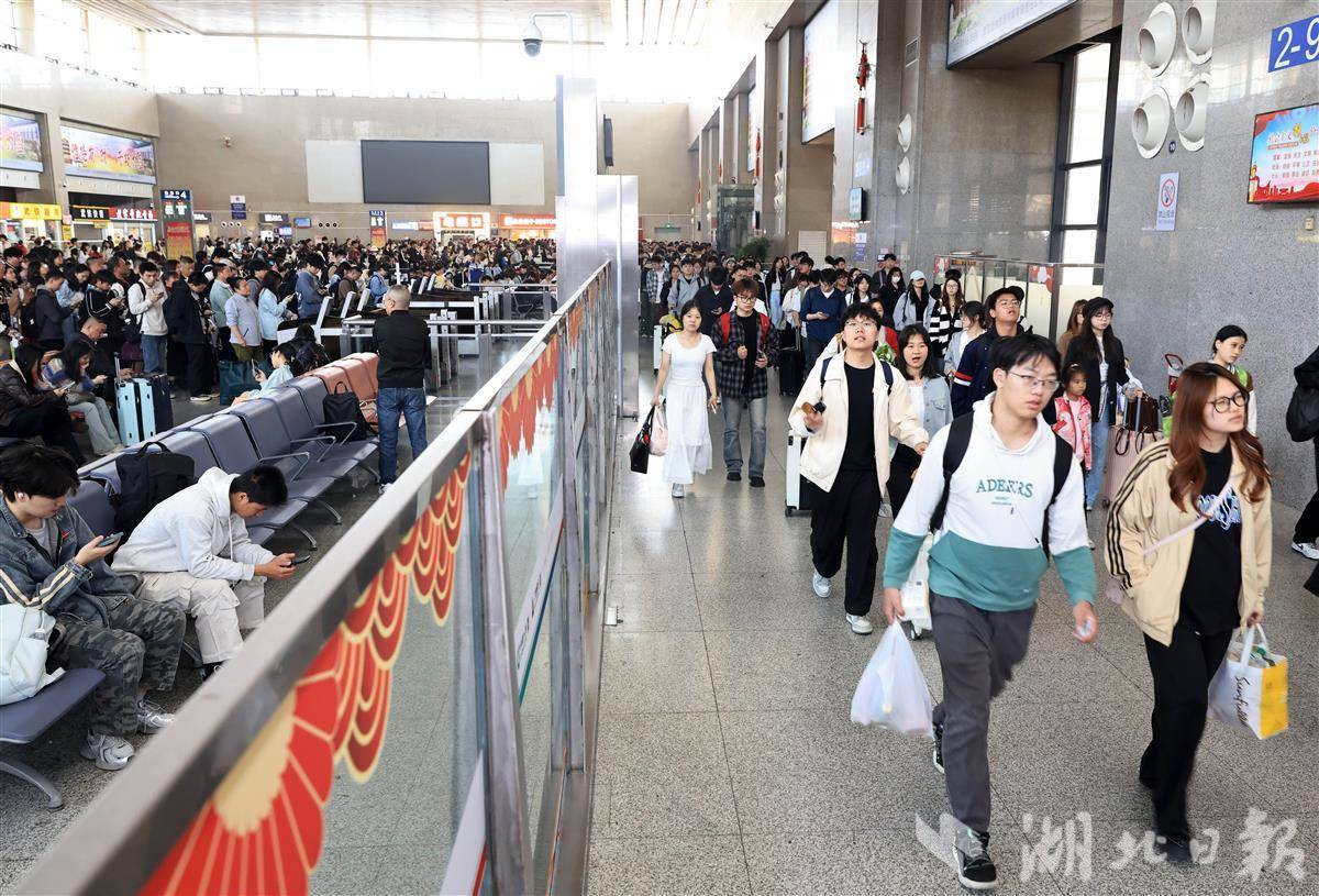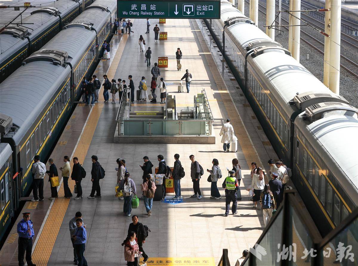 4月6日,武昌火车站,旅客有序进站乘车、到达出站。当天,铁路部门迎来清明小长假返程高峰,武昌站发送到达旅客10万人次。据悉,为应对清明节客流高峰,中国铁路武汉局集团有限公司增开97对始发临客列车,并采取动车组重联运行、开行夜行高铁等措施,满足旅客铁路出行需求。武汉、襄阳客运段还为旅客准备了赏花攻略宣传册。武汉、襄阳、宜昌等车站还积极与地铁、公交、出租车等交通部门协调对接,服务乘坐夜行高铁抵达的外地游客。