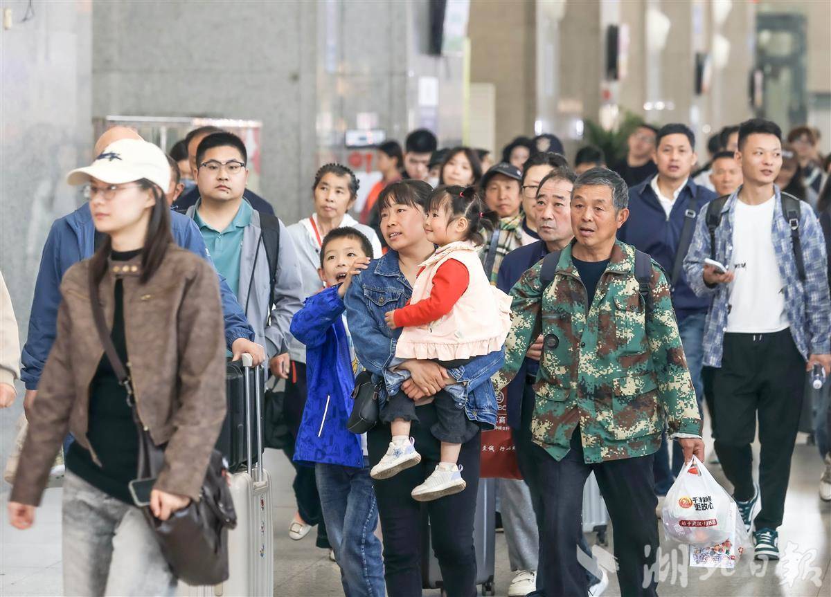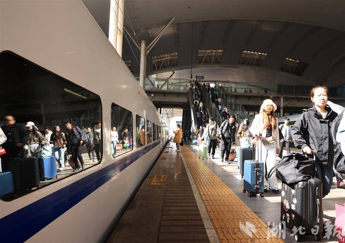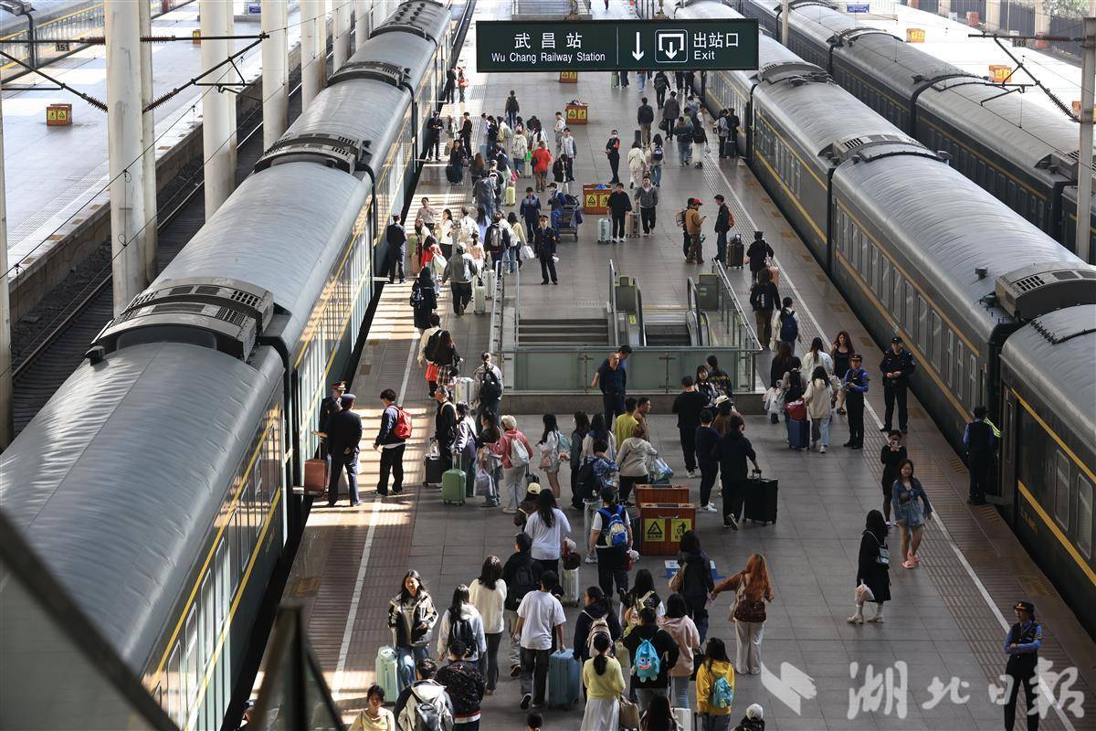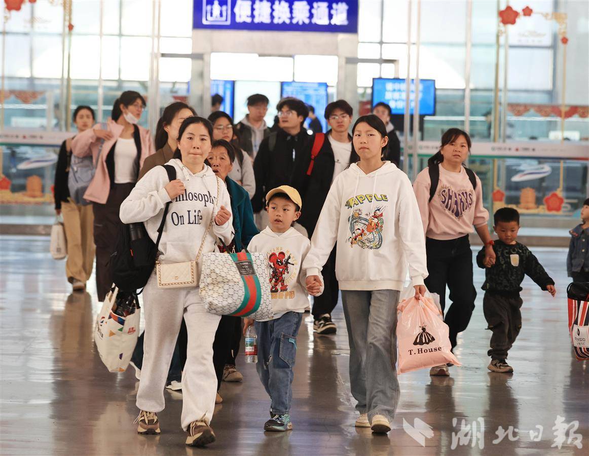 4月6日,武昌火车站,旅客有序进站乘车、到达出站。当天,铁路部门迎来清明小长假返程高峰,武昌站发送到达旅客10万人次。据悉,为应对清明节客流高峰,中国铁路武汉局集团有限公司增开97对始发临客列车,并采取动车组重联运行、开行夜行高铁等措施,满足旅客铁路出行需求。武汉、襄阳客运段还为旅客准备了赏花攻略宣传册。武汉、襄阳、宜昌等车站还积极与地铁、公交、出租车等交通部门协调对接,服务乘坐夜行高铁抵达的外地游客。