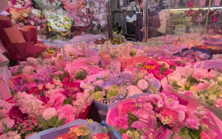 订单爆棚的小店,是鲜花经济升温的一个缩影。而在鲜花批发市场,则是花市里更为汹涌的“春潮”。