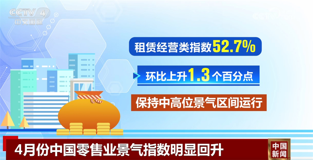 中国商业联合会4月6日发布数据显示,4月份中国零售业景气指数环比上升0.3个百分点,零售业市场经营环境持续改善,消费市场活力稳步提升。