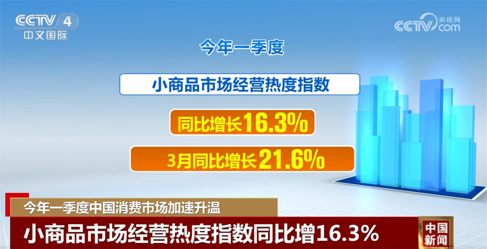 小商品市场经营热度指数一季度同比增长16.3%,其中3月同比增长21.6%,这表明与居民生活贴近的小商品销售持续保持旺盛活力,民生消费需求正在加速释放。