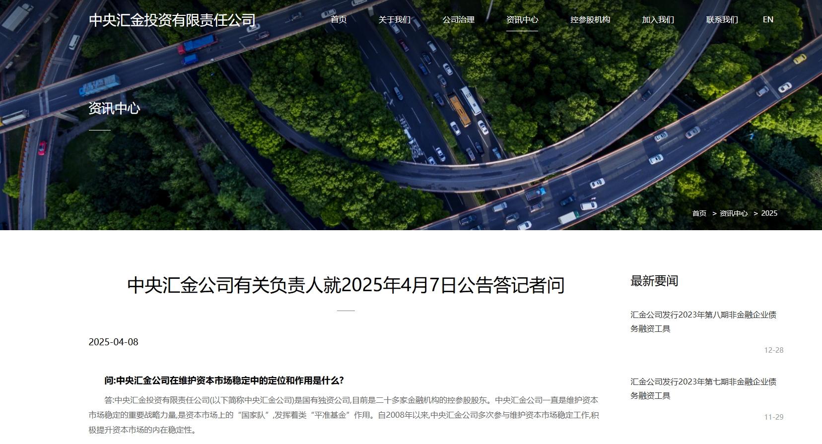 问:中央汇金公司在维护当前资本市场稳定方面有什么打算?
