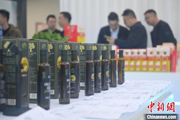2024年11月3日,甘肃省陇南市武都区一橄榄油产品展区内,顾客挑选橄榄油产品。李亚龙摄
