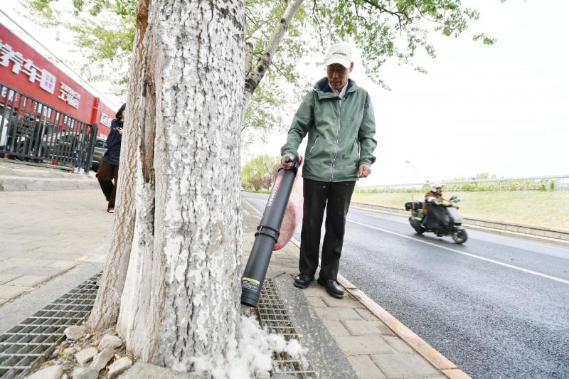 北京已进入杨柳飞絮高发期。4月9日,北京青年报记者从市园林绿化局获悉,今年,本市又有一批“黑科技”投入使用,如能把飞絮“粘”在树上的凝絮剂、能像吸尘器一样拎在手上的“飞絮吸收机”,借助创新研发的新产品,助力杨柳飞絮防治。