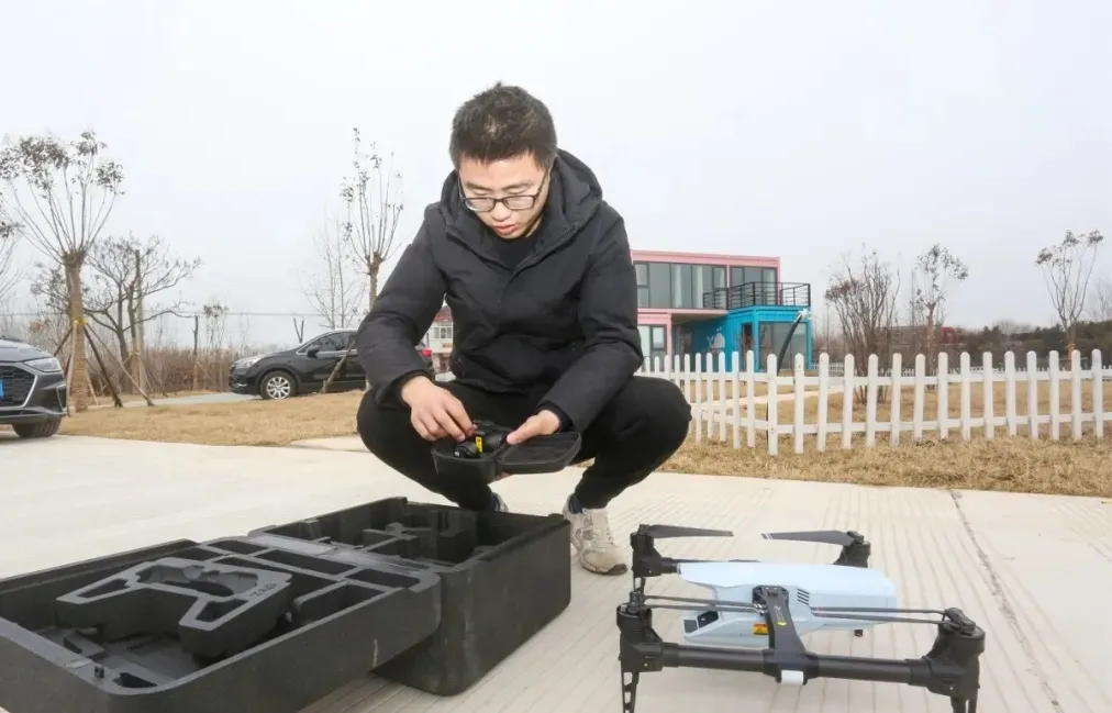 在步凤镇5000亩无人化农场,技术员韦业正在操控无人机进行作物生长监测,收集数据回传到大数据中心。