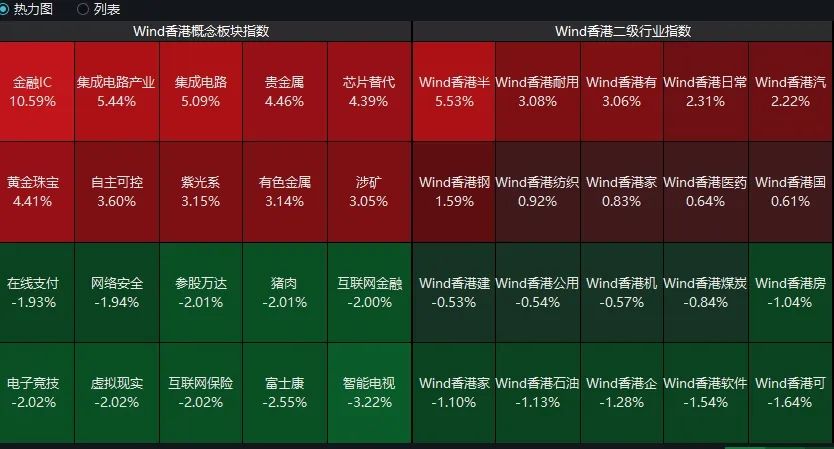 昨日反弹的生物医药股再度下跌,昨日领衔上涨的苹果概念股、消费电子概念股齐跌;餐饮股、特斯拉概念股、内险股、濠赌股多数下跌。另一方面,现货黄金触及3220美元/盎司,再创历史新高,黄金股大幅上涨。