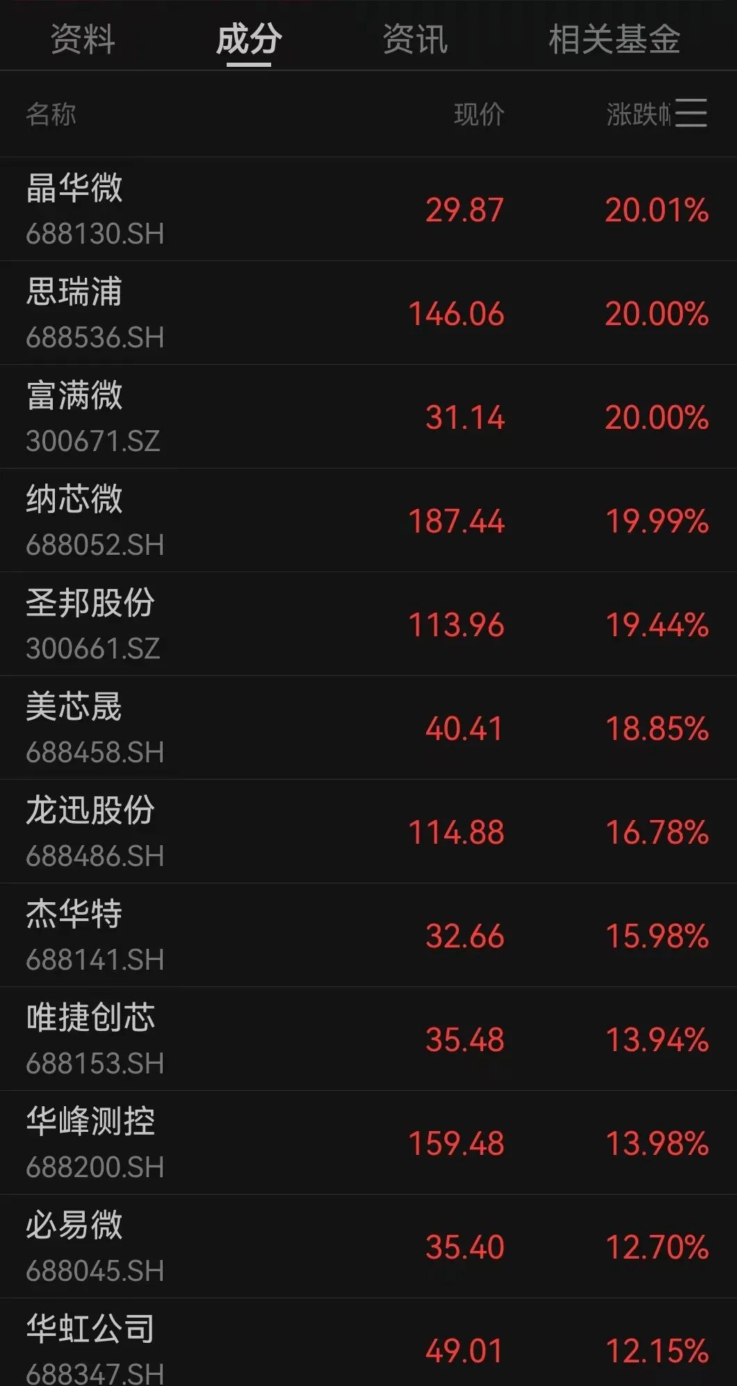 4月11日,芯片股大幅拉升,半导体指数涨幅超3.6%。晶华微、思瑞浦、富满微、纳芯微集体20%涨停,圣邦股份、美芯晟等纷纷大涨。