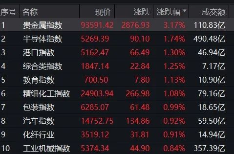 A股早盘,现货黄金触及3220美元/盎司,再创历史新高,刺激黄金股集体高开高走。截至发稿,贵金属指数涨超3%,领涨A股行业板块。