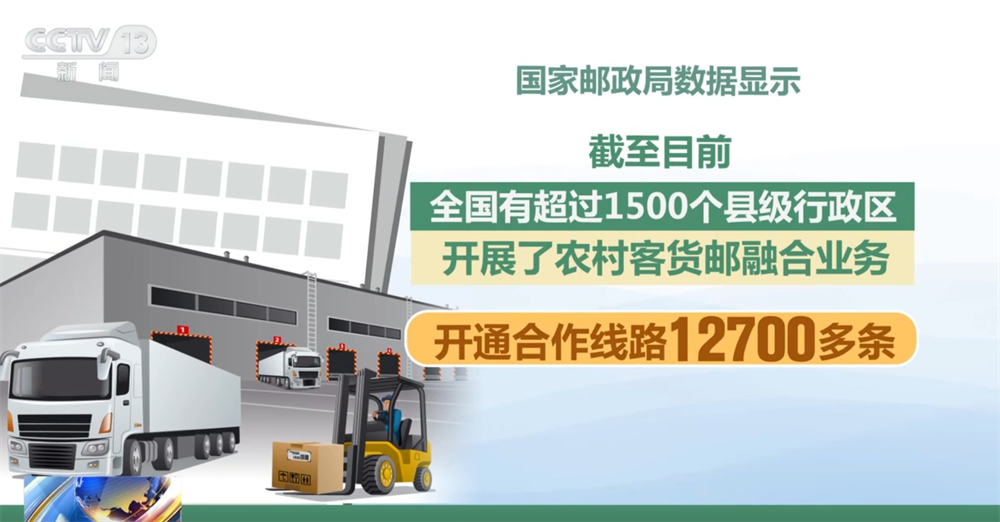 国家邮政局数据显示,截至目前,全国有超过1500个县级行政区开展了农村客货邮融合业务,开通合作线路12700多条。全国通过农村客货邮融合业务运达的邮件快件数量超9亿件。