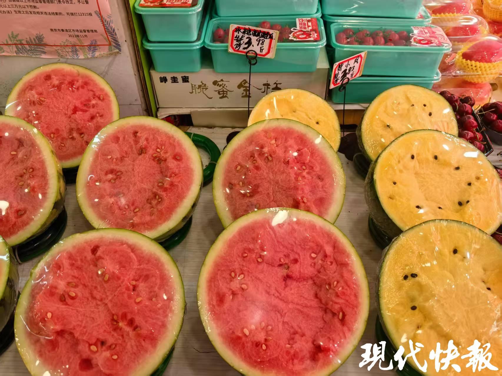 气温上升,不少人想吃西瓜解解渴,市场上麒麟西瓜和黄心的特小凤西瓜3元多一斤,小糖丸西瓜5元多一斤。“这些都是头茬西瓜,皮薄果甜,汁水丰富,再等一个月会便宜不少。”一名水果摊老板说。