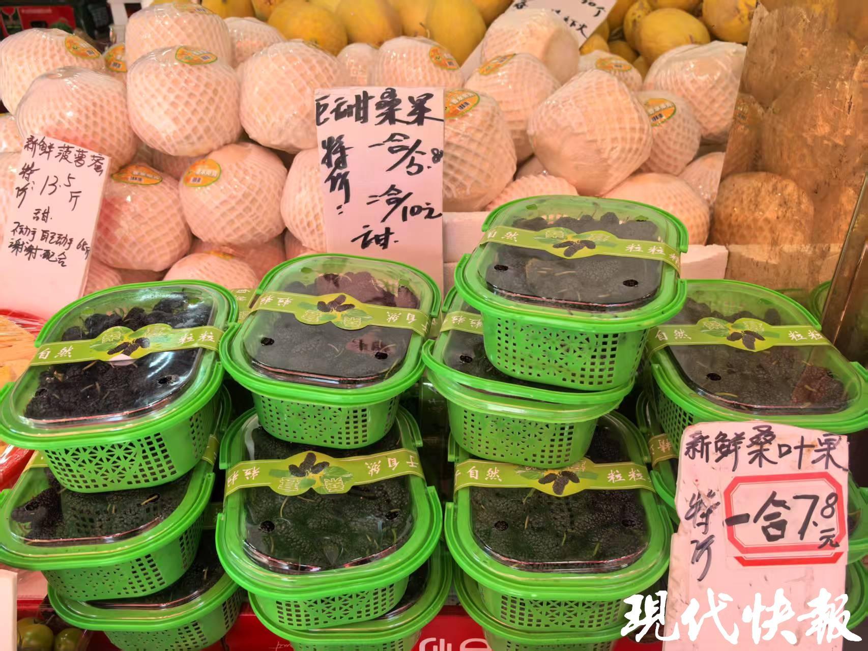 桑葚也是春季水果中的亮点,是很多人小时候记忆里的水果,3—8元一盒价廉物美,吸引了不少人购买。各种早熟葡萄也抢“鲜”亮相,夏黑葡萄13.8元一斤,还有小巧的郁金香葡萄、茉莉香小葡萄。“自带茉莉香气的小葡萄很有趣,就像咬开了葡萄味的爆珠。”市民吴女士说。