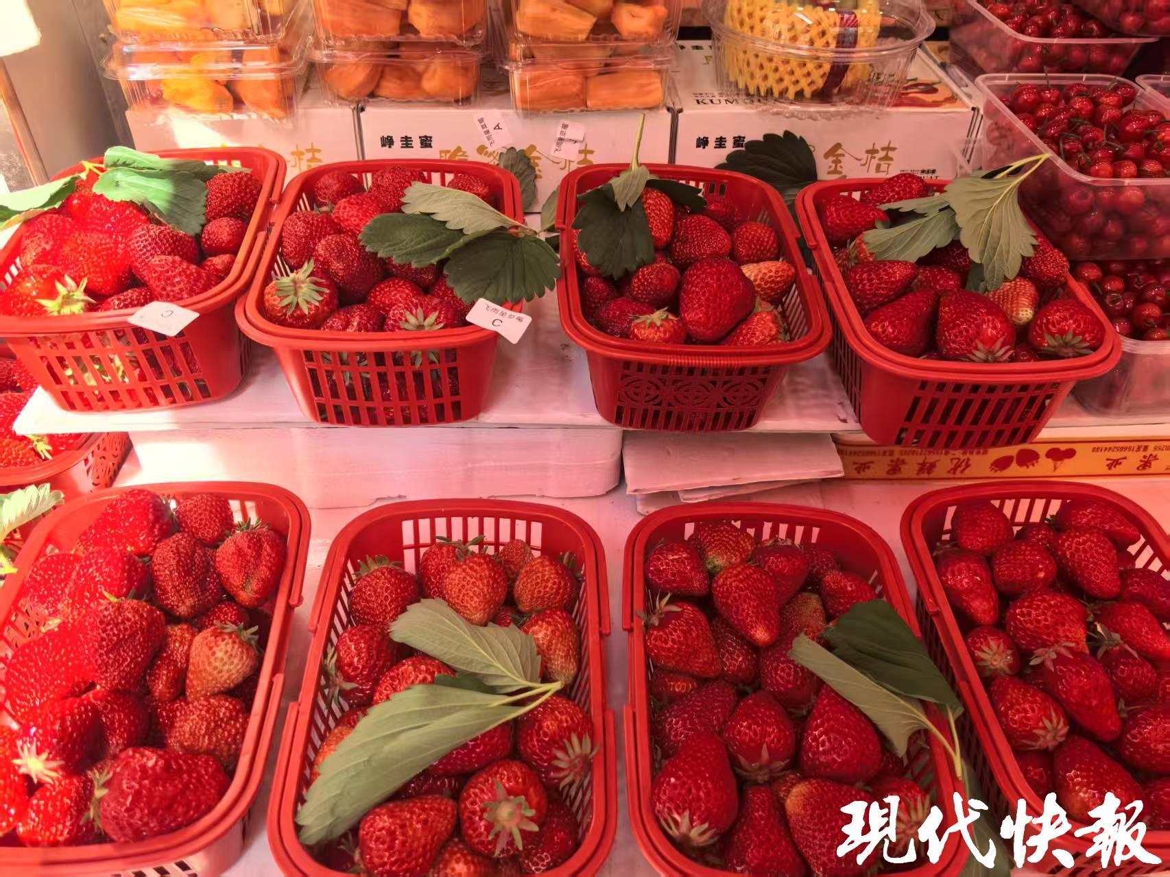 现代快报记者走访看到,路边香气四溢、五颜六色的水果十分诱人。在南京张府园附近的几个水果摊位上,一筐筐草莓十分显眼。一名水果经营户表示,草莓价格较冬天便宜了很多。“最小的草莓单价为5元一斤,稍大规格的8元一斤,还有10元一斤的,最高也不超过20元一斤,现在买很划算,吃不完的还可以做成草莓酱。”