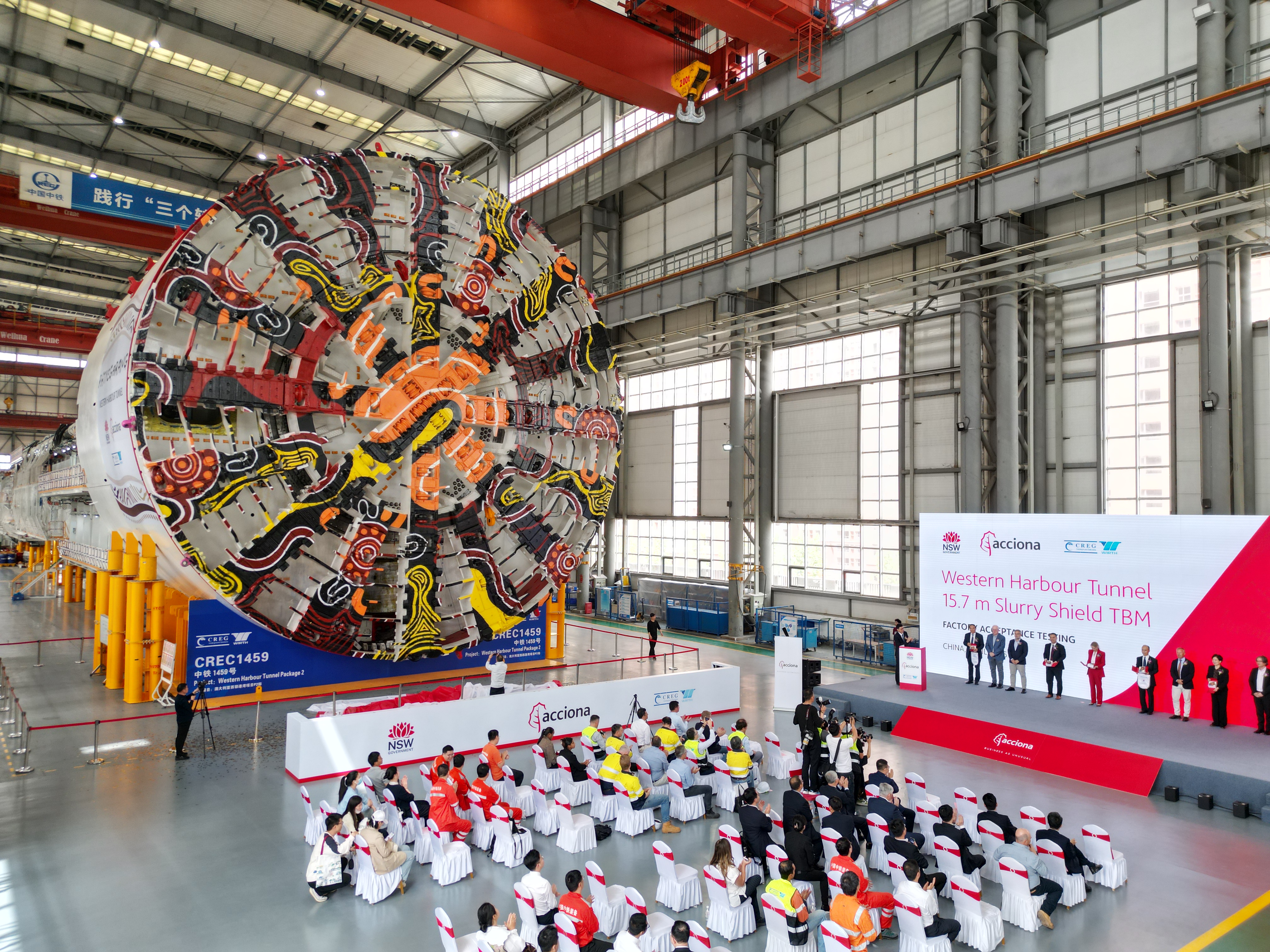 中铁装备出厂的每一台盾构机,都会赋一个独一无二的皮肤。“中铁1459号”盾构机的刀盘涂装设计以“帕蒂加朗”为核心符号,巧妙融入了澳洲原住民的图腾文化,实现了硬科技与软文化的碰撞。