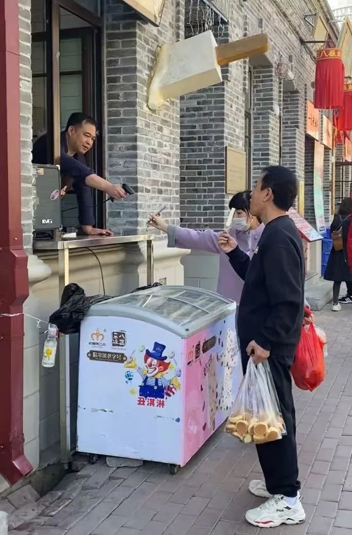 “芝麻冰棍、麻将冰棍,2元一根!”在道外北头道街三八饭店外卖窗口,工作人员边吆喝着边用扫码枪为购买者结账,不断有市民游客停下脚步买根冰棍边走边吃。