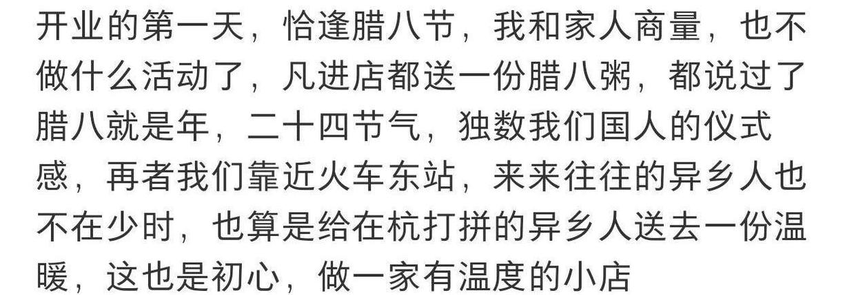 “开业第一天恰逢腊八节,我和家人商量好,凡进店的人都送一份腊八粥。都说过了腊八就是年,我们的小店靠近高铁站,来来往往的异乡人不少,希望这能给他们带来温暖。我们的初心,是做一家有温度的小店。”