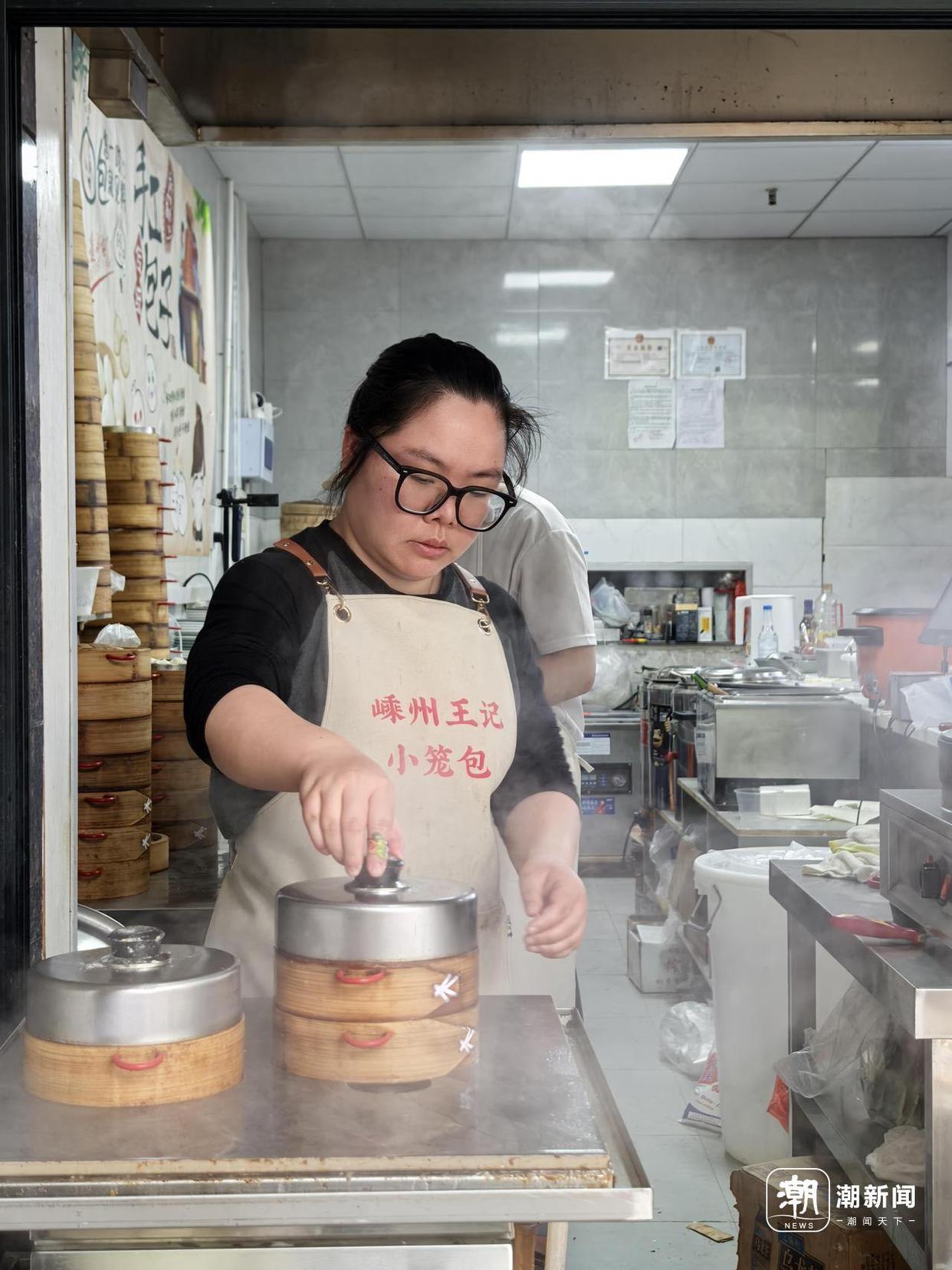 小张在蒸小笼包。 施雄风 摄