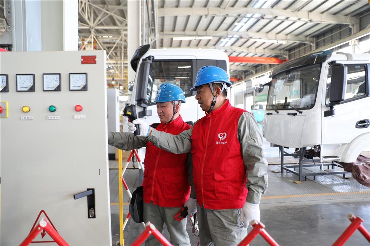 4月10日,国网湖北电力员工到随州程力专用汽车股份有限公司进行安全用电检查(通讯员李婧璇摄)