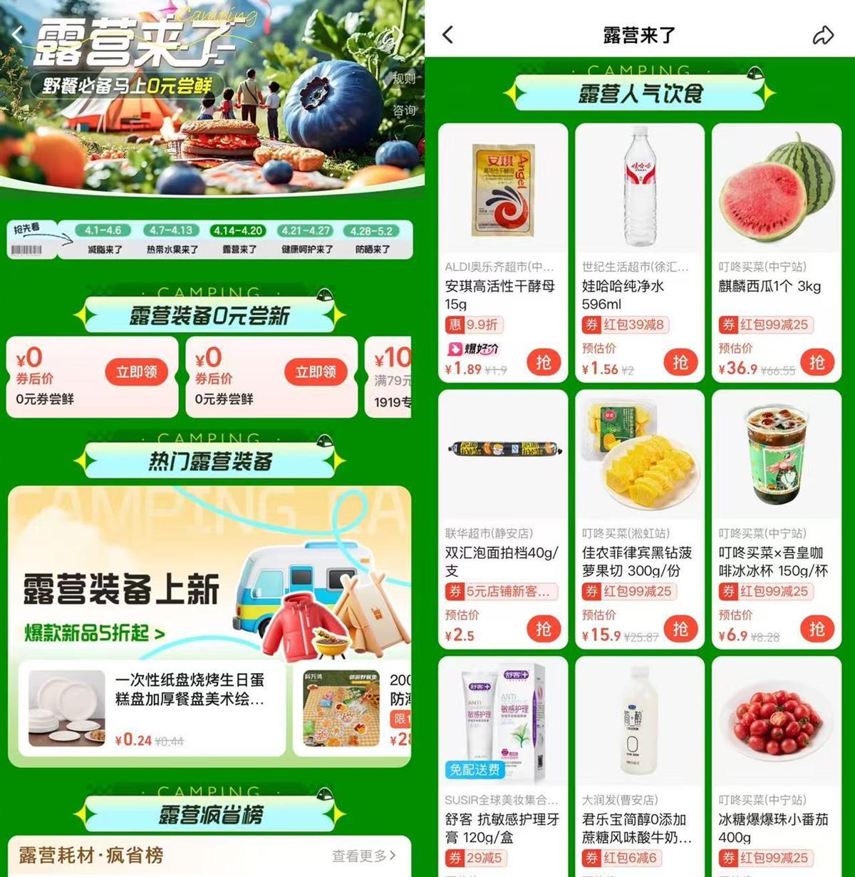 为了更好激活春日户外消费活力,据悉,即日起至4月20日,消费者上饿了么搜“露营季”即有机会获得饿了么每天提供的万张0元尝鲜免单券,优惠覆盖了水果、零食、户外装备等诸多品类。