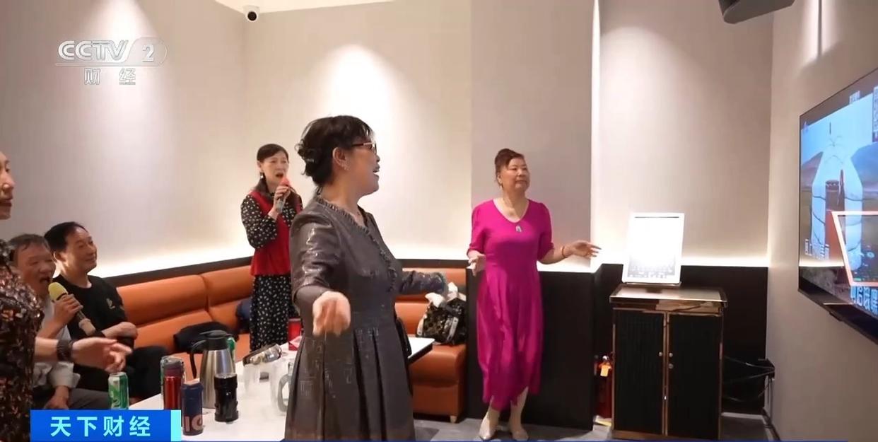 吃过午饭,这些叔叔阿姨在店里的KTV放声高歌,一整个下午,都可以在这里唱歌、聊天、喝茶。