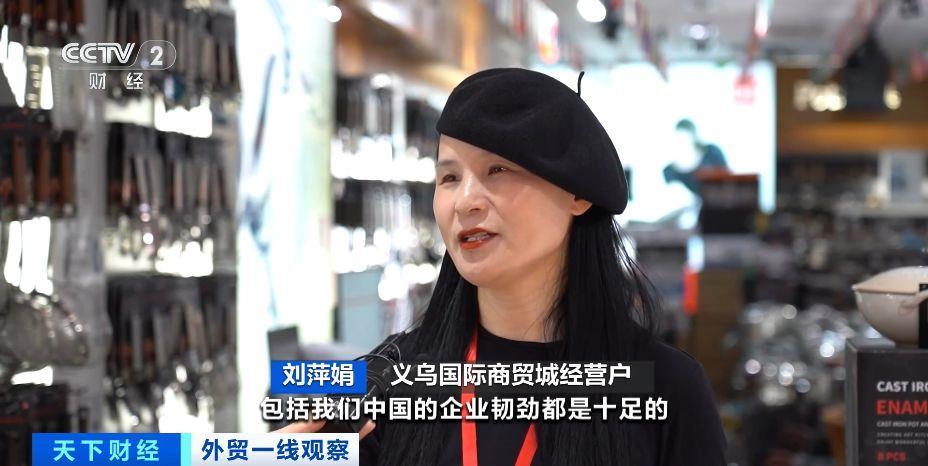 义乌国际商贸城经营户 刘萍娟:我们义乌的企业,包括中国的企业都是韧劲十足,你关了一扇门,我可以开无数扇门,因为我们是做全球贸易的。