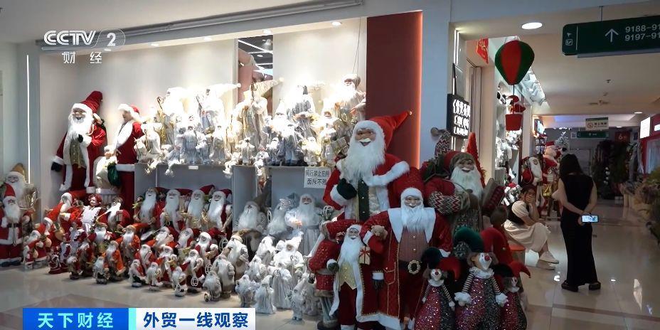 在圣诞用品区,记者看到,有不少的外商正在各个店铺里面挑选样品、洽谈订单。