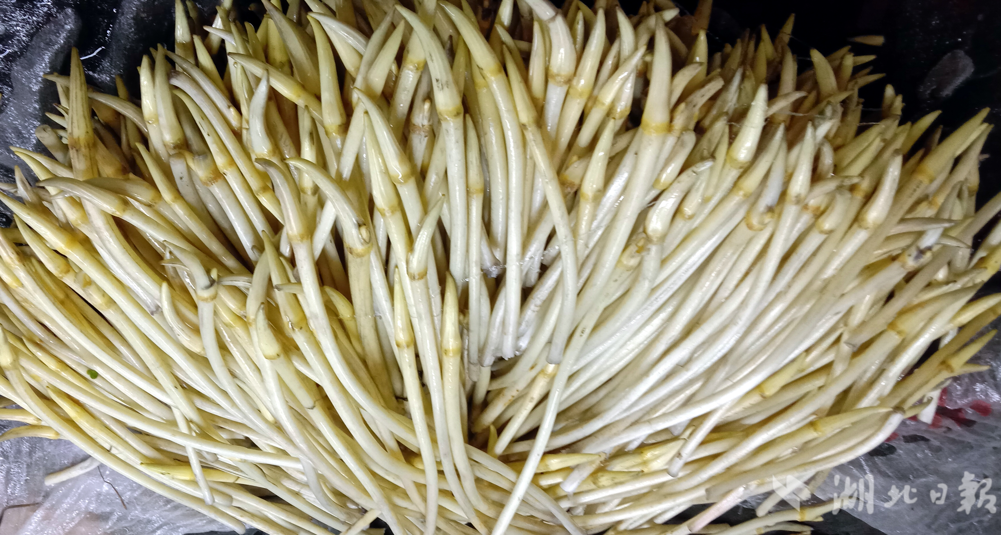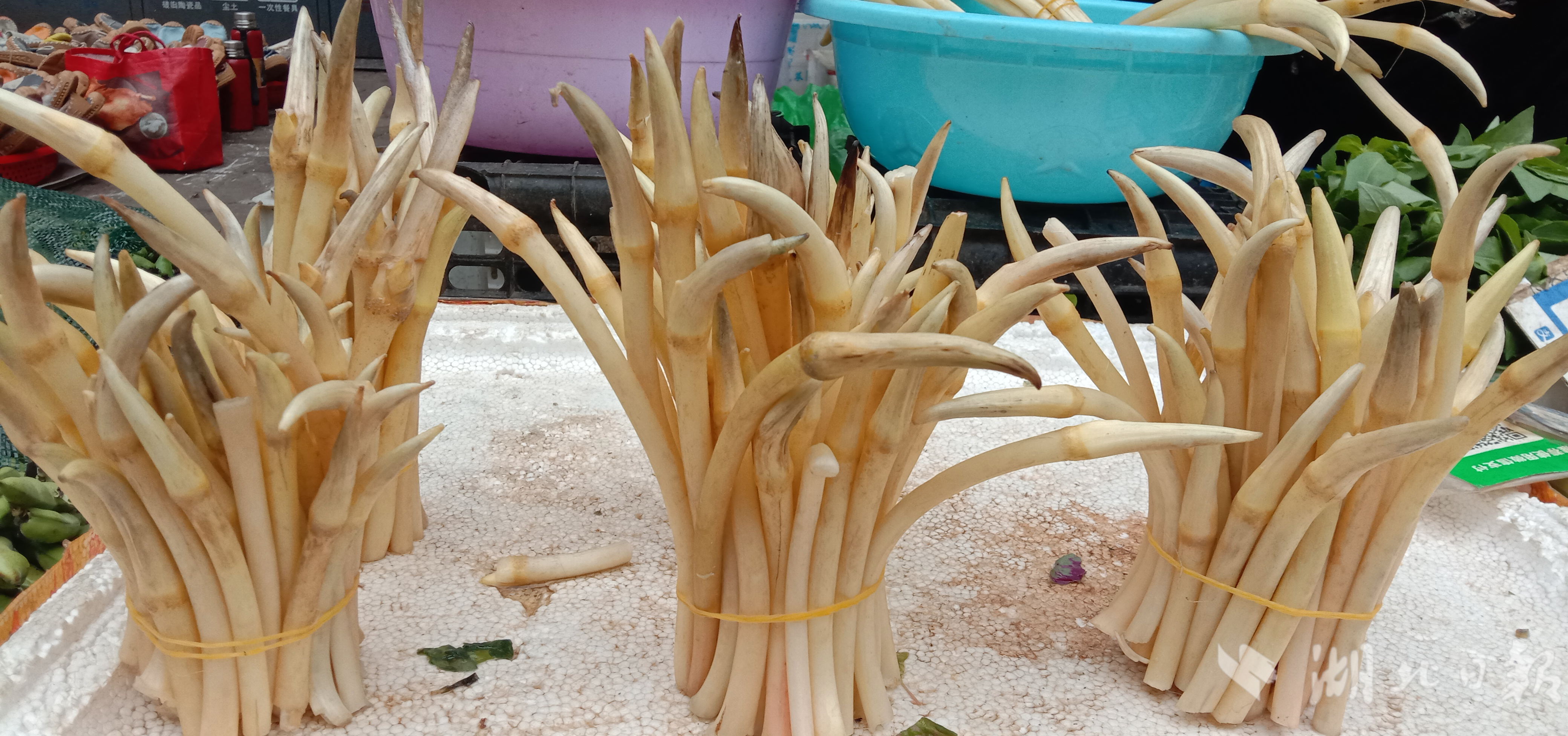 记者近日走访武汉生鲜市场了解到,这些藕带主要来自江夏、蔡甸和长江新区,也有来自武汉周边汉川、仙桃、咸宁等地。4月25日,汉阳王家湾生鲜市场,一盆一盆白净新鲜藕带,按长短摆放,十分诱人,每斤价格分别为20、26元不等,也可论把卖,8到10元一把。