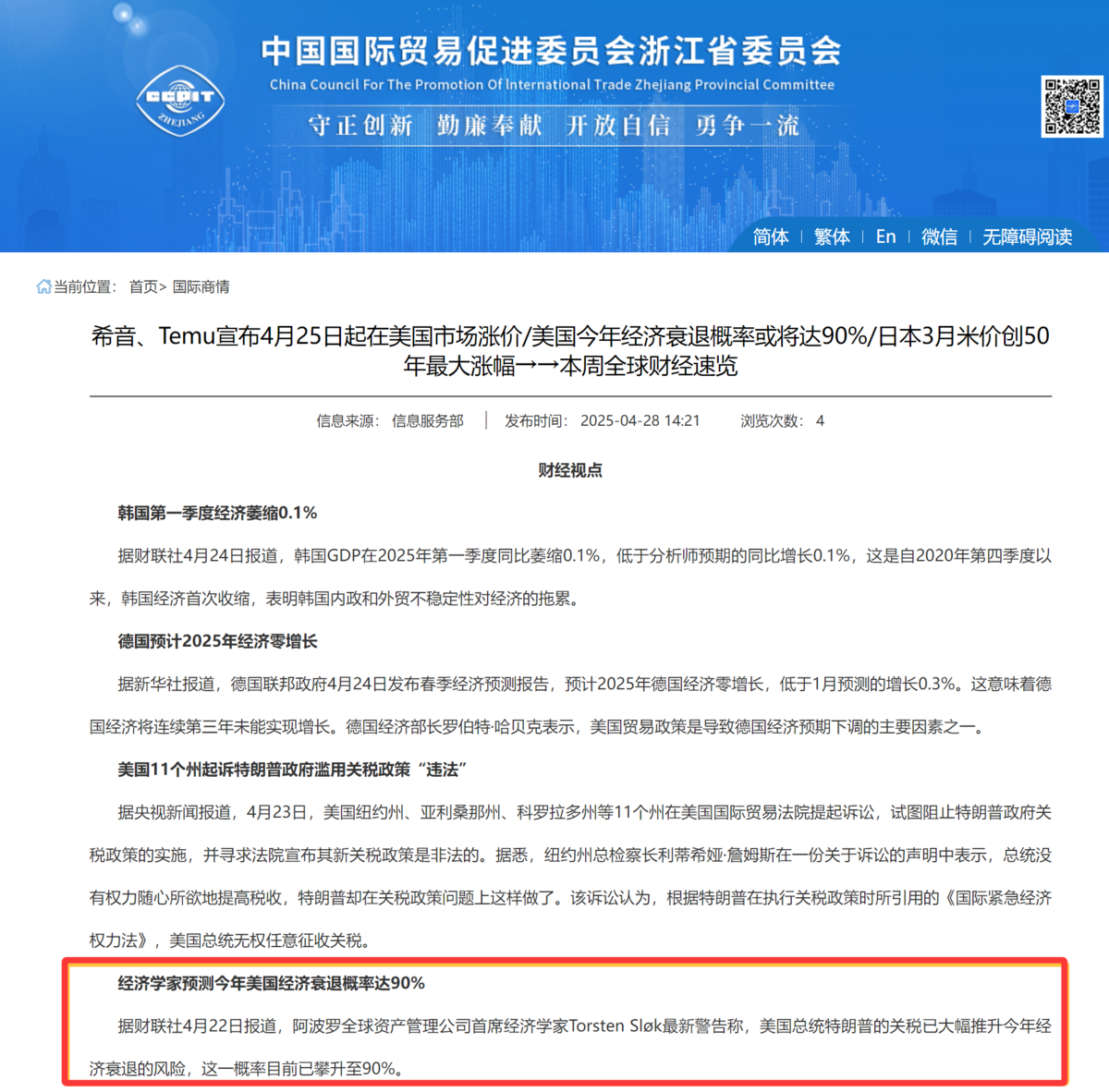 据财联社4月22日报道,阿波罗全球资产管理公司首席经济学家Torsten Sløk最新警告称,美国总统特朗普的关税已大幅推升今年经济衰退的风险,这一概率目前已攀升至90%。