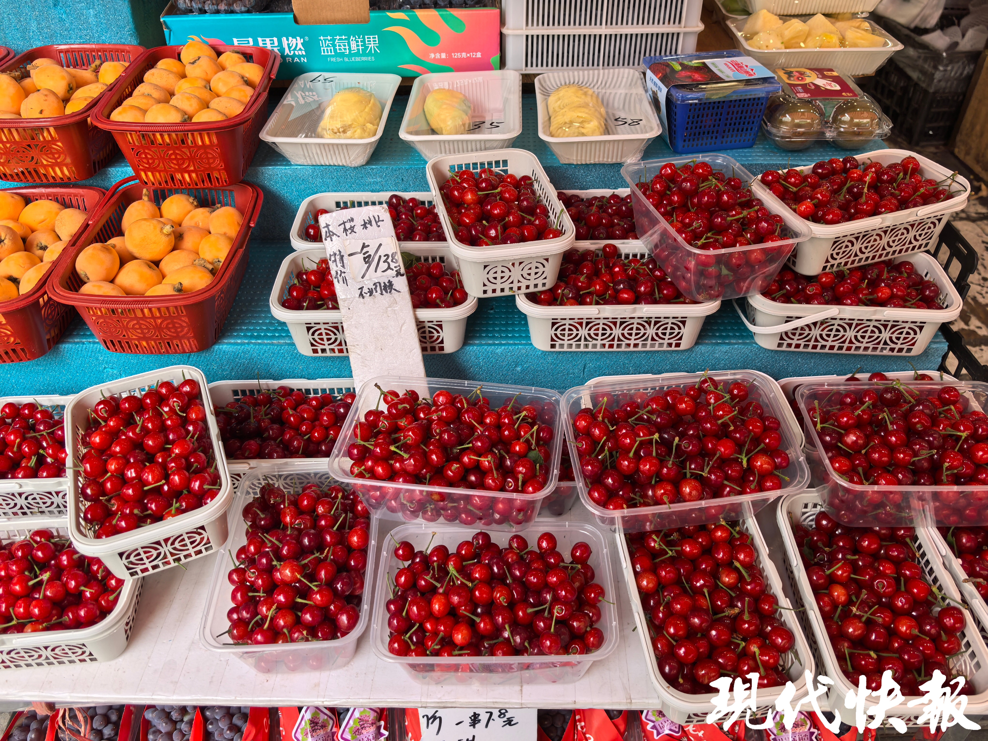 “这是南京本地种植的樱桃,虽然个头小,但很新鲜,18元一盒。”现代快报记者看到,一种个头较小、红透油亮的樱桃也吸引了不少人购买。市民王女士说,这种玛瑙樱桃和小蓝莓个头差不多,非常新鲜,比较娇气,还可以采摘,别有一番风味。