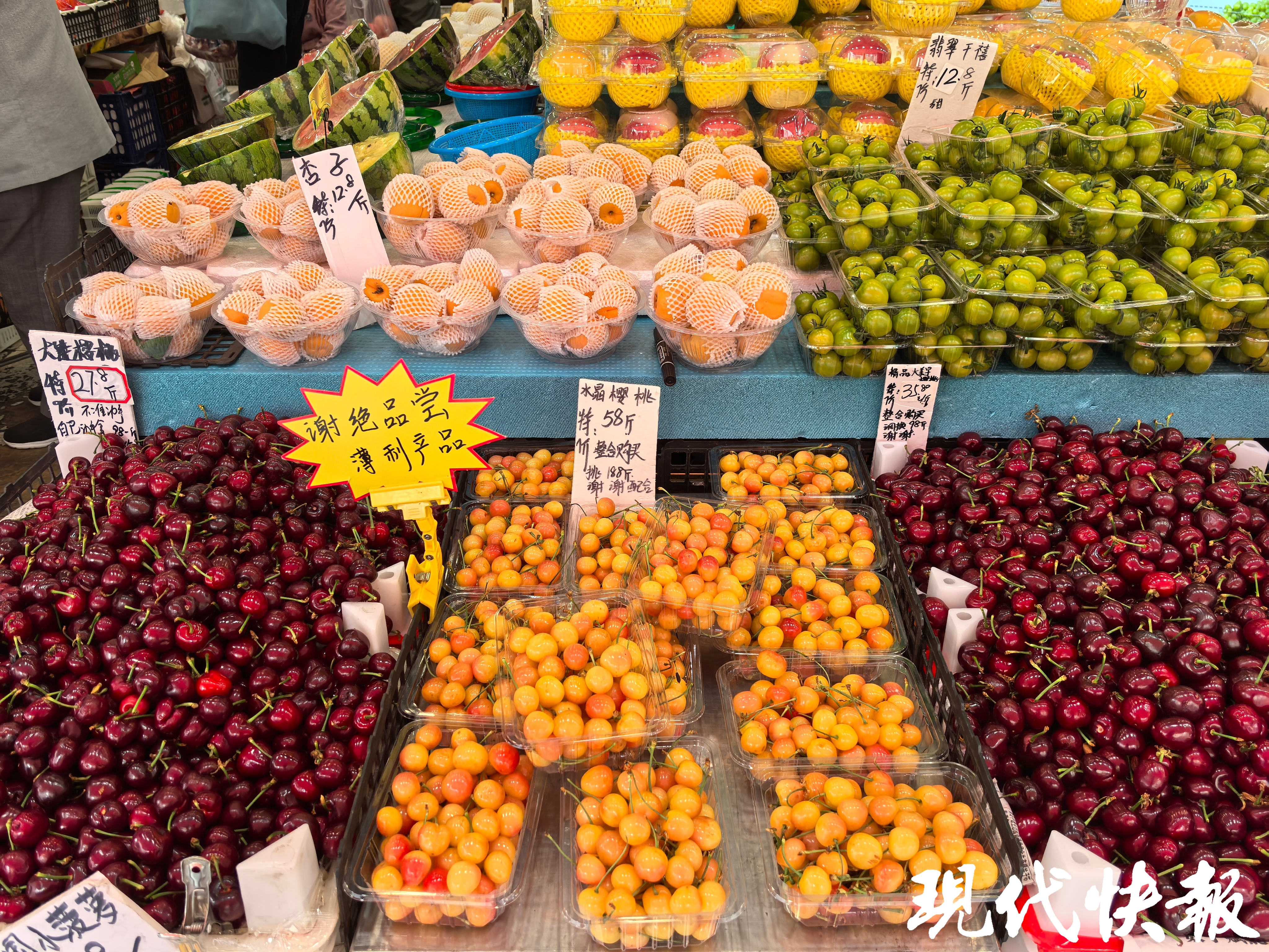 樱桃被称为早春第一果,随着时间的推移,国内本土的大连大樱桃等水果已经陆续成熟上市。南京张府园附近的一家水果超市老板王女士说,按往年市场规律,南京市场上来自大连的国产大樱桃于3月份开卖,售价堪比刚上市时的进口车厘子,每斤售价要一两百元。现在樱桃大量上市后,价格和一个月前相比已经算是“腰斩”了。