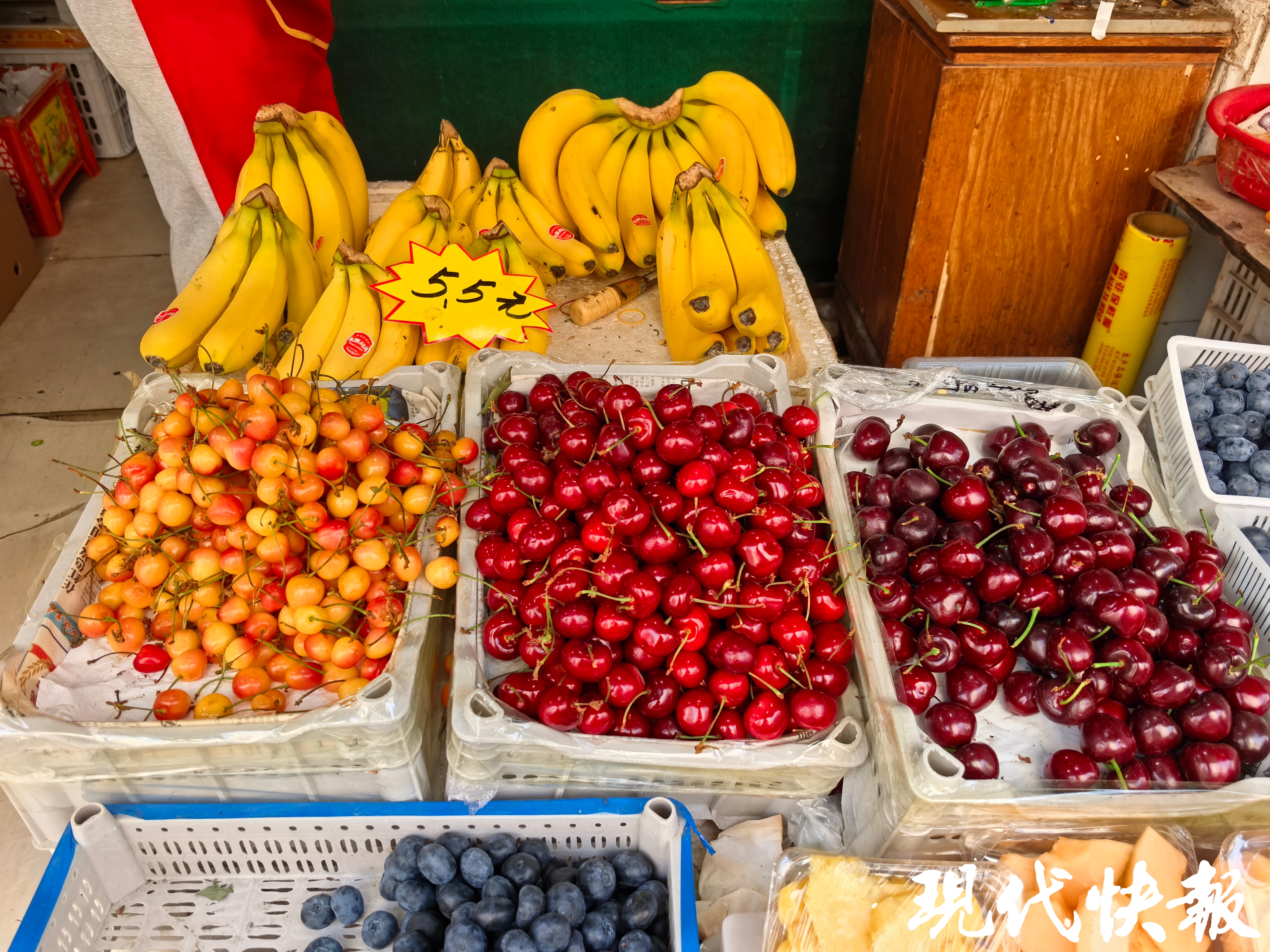 现代快报记者从南京农副物流中心了解到,当前国内樱桃主产区集中在大连与山东两地,热销的樱桃涵盖了美早、布鲁克斯、水晶黄蜜等主流品类。其中,美早樱桃以果大肉厚、脆甜多汁,成为市场主力军,单果规格最大可达7J,大连产区顶级7J果批发价约52元一斤,山东产区的精品7J果40多元一斤。