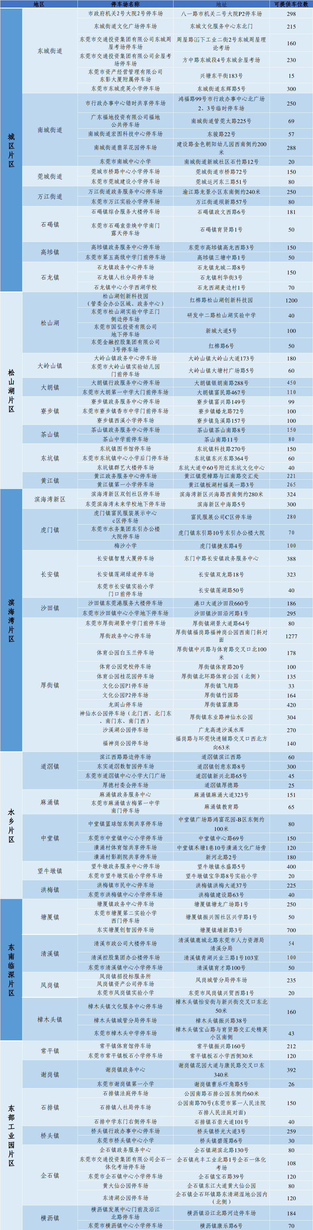东莞市机关企事业单位具备停车条件的103处停车场(详见清单),共17489个停车位。