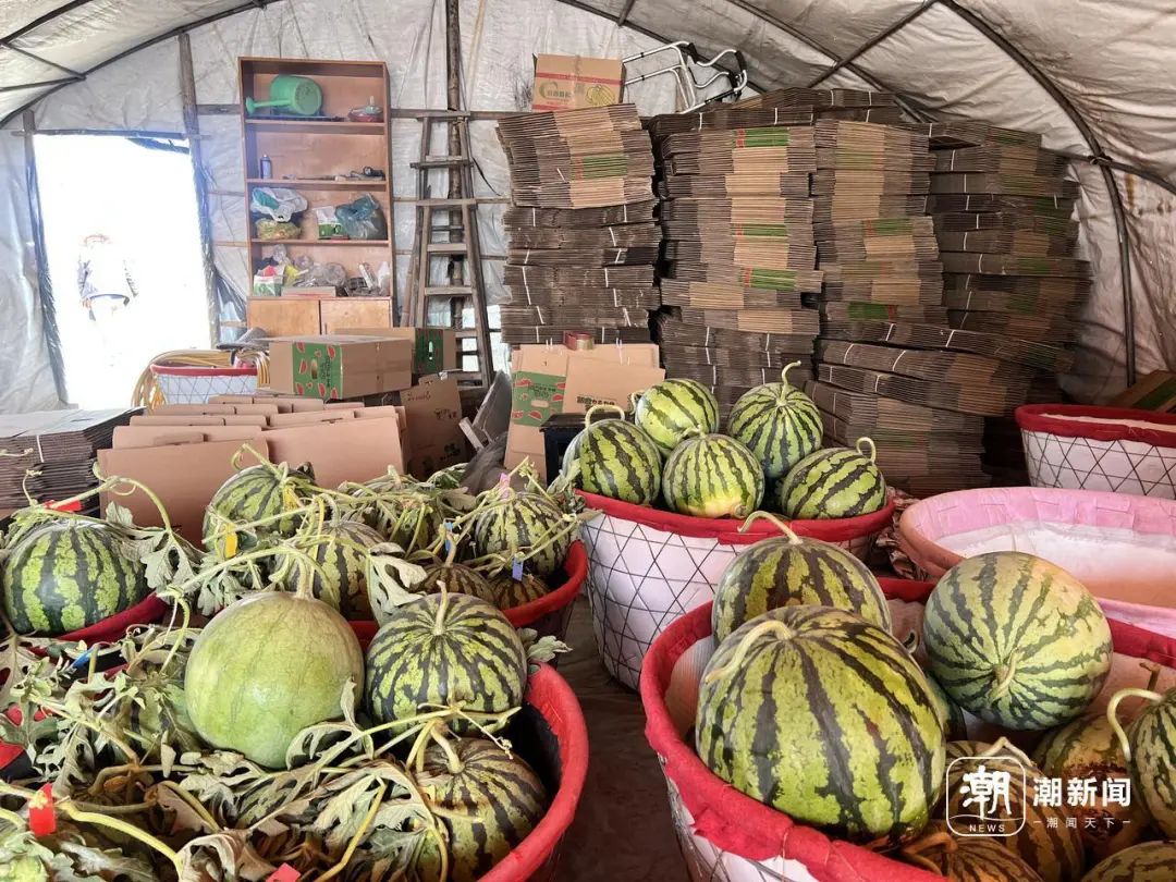 “订单已经排到5月5日,这两天订出去的瓜都在150箱到200箱之间。”瓜地门口的小棚子,是冀锡林放工具和卖瓜的地方。