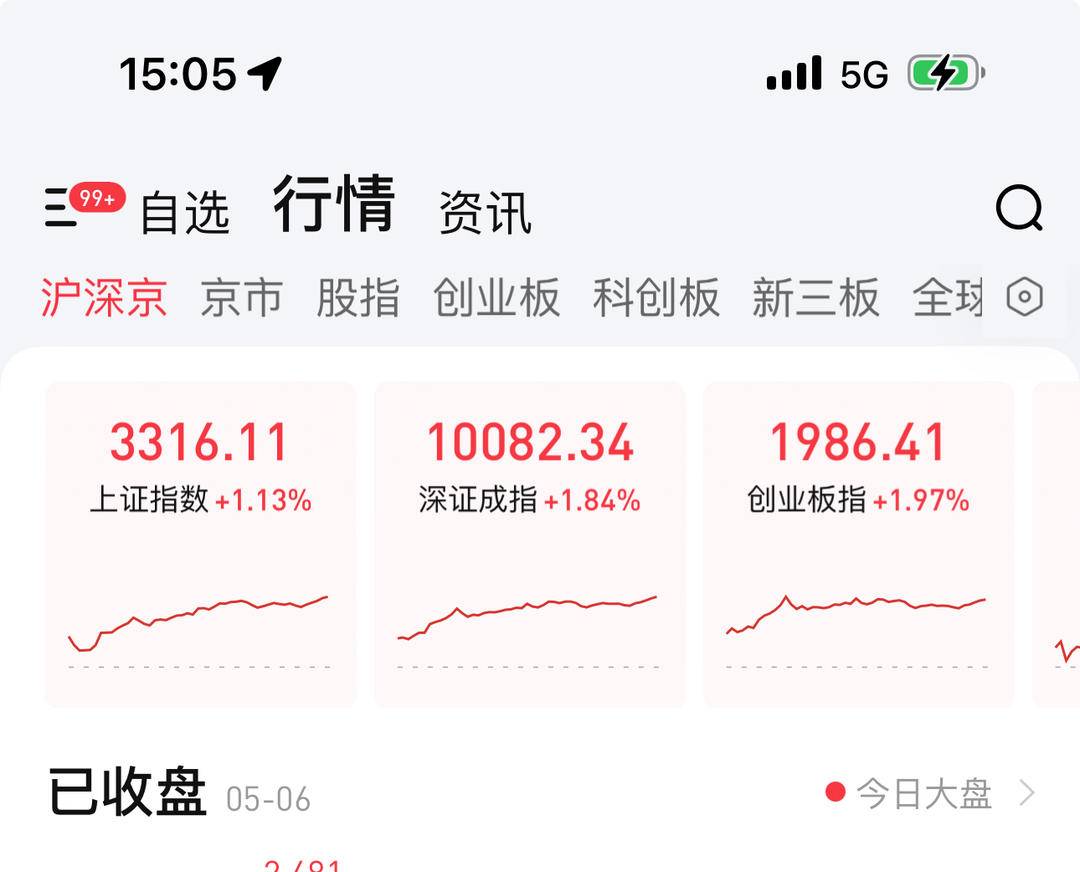 扬子晚报网5月6日讯(记者 范晓林)五一假期后首个交易日,市场全天高开高走迎节后开门红,创业板指领涨,沪指收盘重回3300上方。沪深两市全天成交额1.34万亿,较上个交易日放量1668亿。