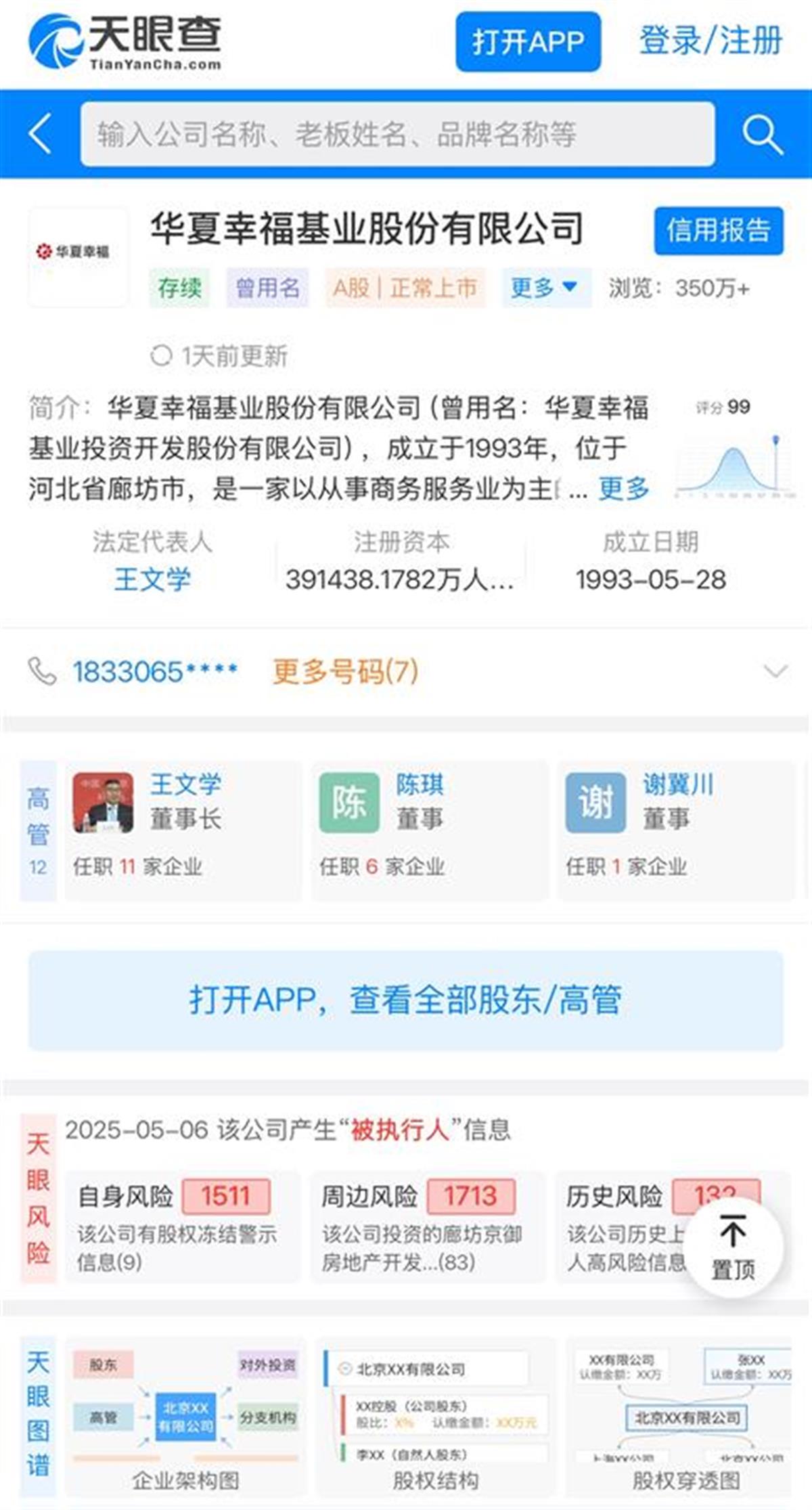 公开资料显示,华夏幸福基业股份有限公司成立于1993年5月,法定代表人为王文学,注册资本约39.1亿人民币,经营范围包括对房地产、工业园区及基础设施建设投资,房地产中介服务,提供施工设备服务等,由华夏幸福基业控股股份公司、香港中央结算有限公司、浙江春晖集团有限公司等共同持股。