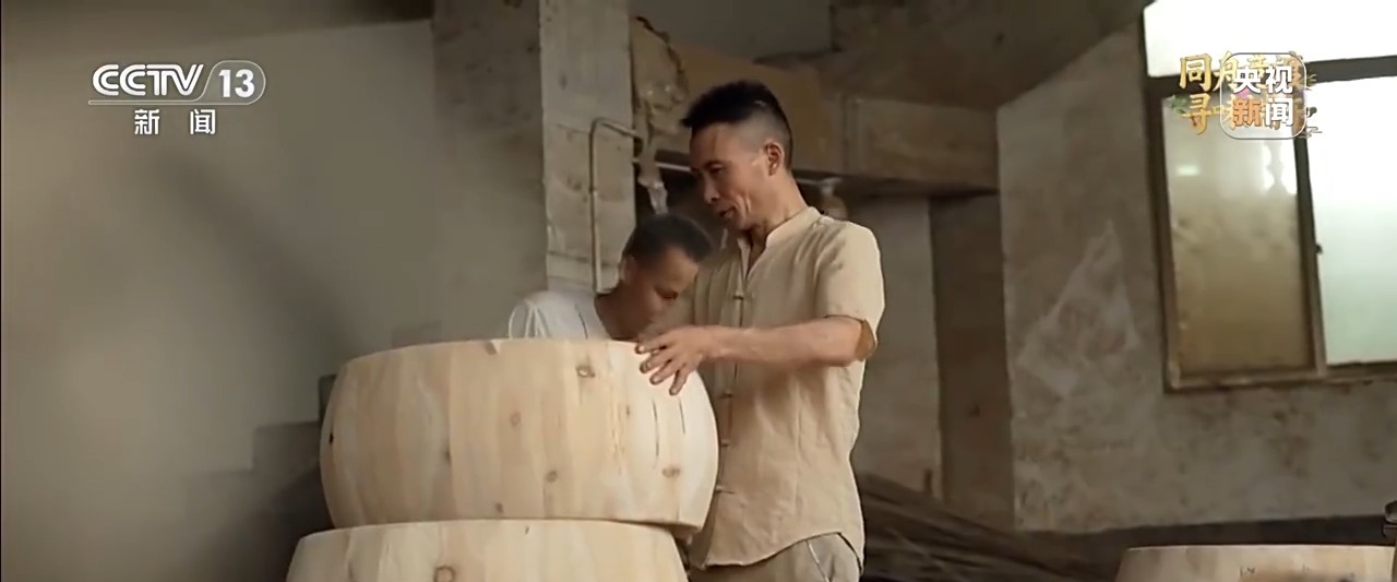 如今,在他的制鼓厂,鞔鼓工艺流程越来越完善。郭新华一边打算为鞔鼓技艺申遗,一边扩大工厂面积,还带着两个儿子,也加入进来,为鞔鼓的设计创新、跨境销售出谋划策。