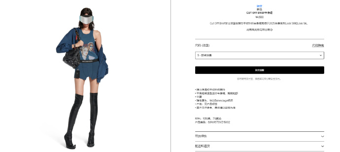 据巴黎世家官网介绍,该女士深蓝色弹力平纹针织半身裙亮相于2025秋季系列Look 50和Look 54,为弹力棉混纺平纹针织面料,平角短裤造型迷你半身裙、剪裁裆部,中腰设计,弹性腰头饰以Balenciaga标识,售价为4500元。