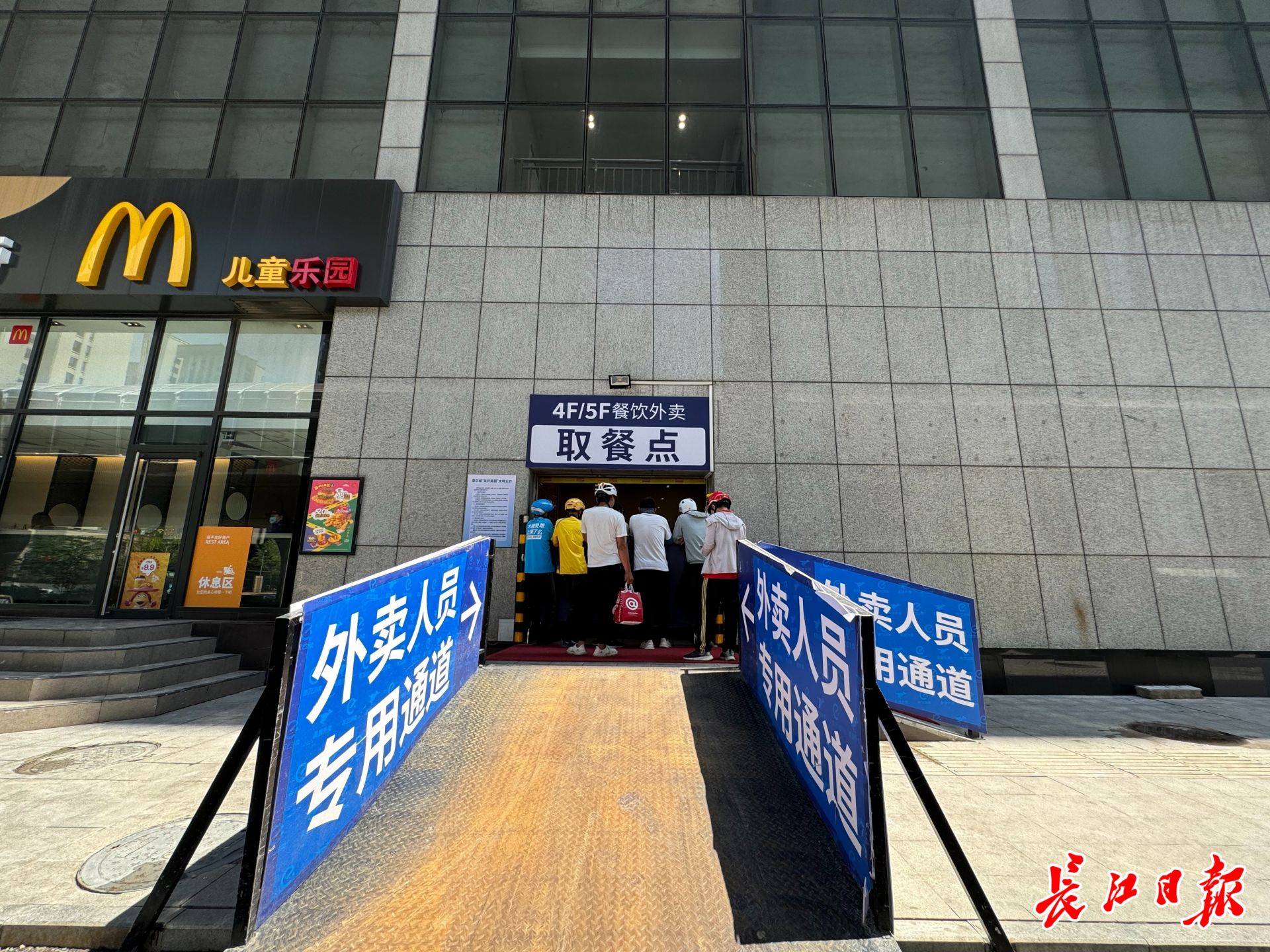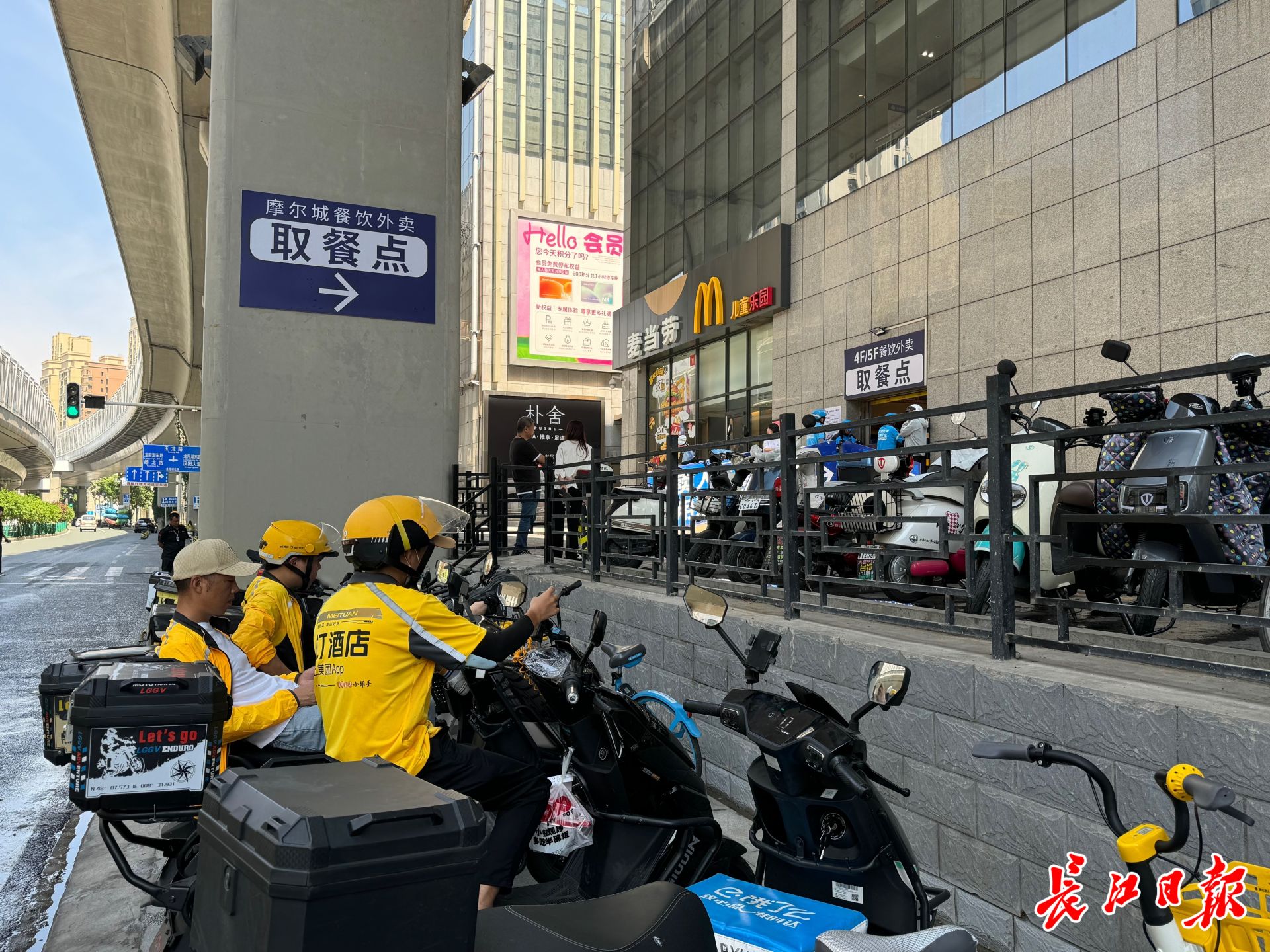 外卖骑手在摩尔城取餐点取餐,距离停车区仅“一步之遥”。长江日报记者陶常宁 摄