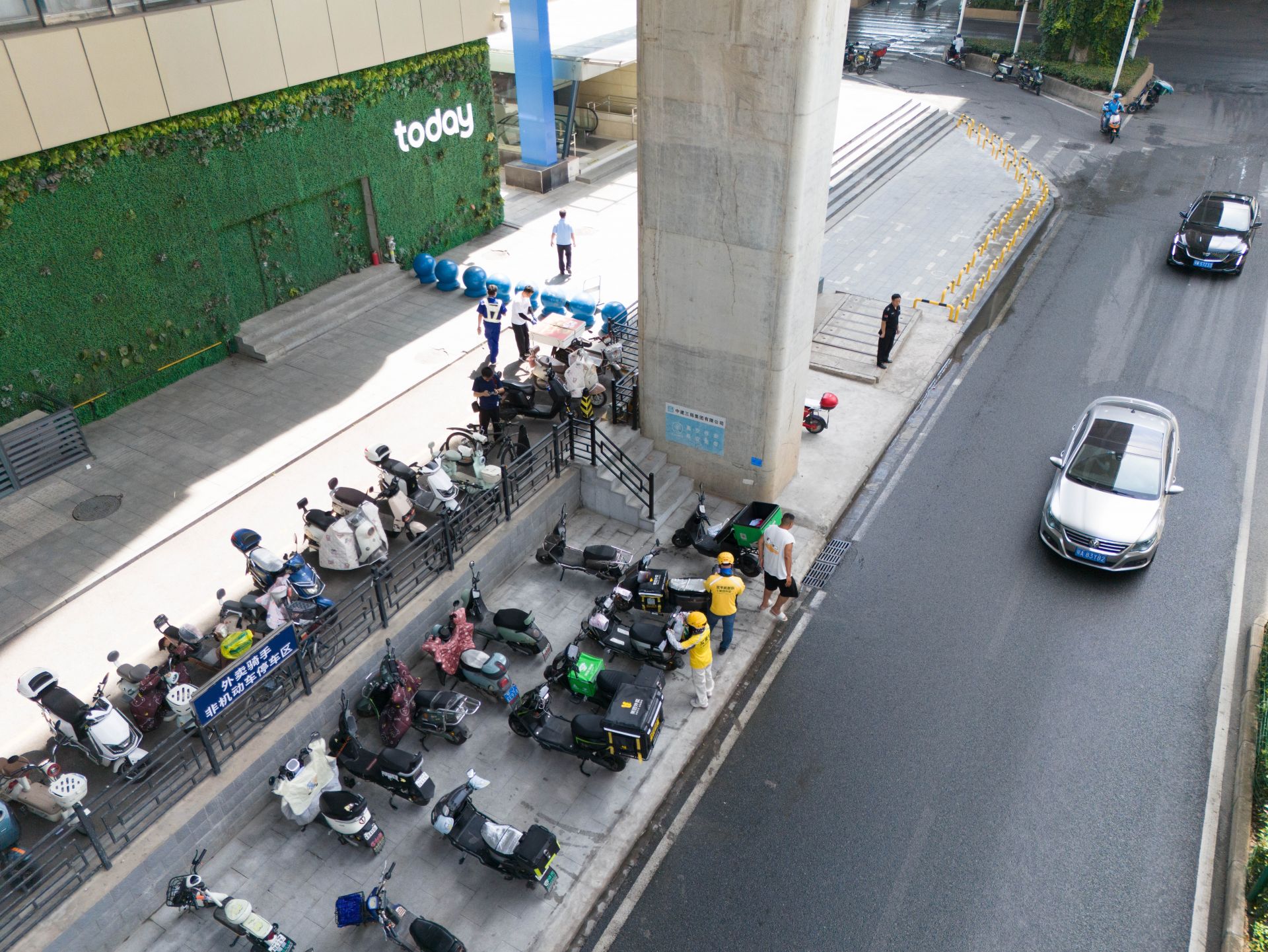 “投用一个月来,外卖非机动车乱停乱放现象得到较大改善。”龙阳街道公管办负责人方鹏飞说,商圈地段“寸土寸金”,解决外卖停车难,不能只想“禁”。他们之前曾在摩尔城马路对面开辟一块停车区,但因为外卖小哥取餐要过马路,许多人还是把电动车停在门口的马路上。现在的专属停车区就在摩尔城门口,取餐方便快捷。