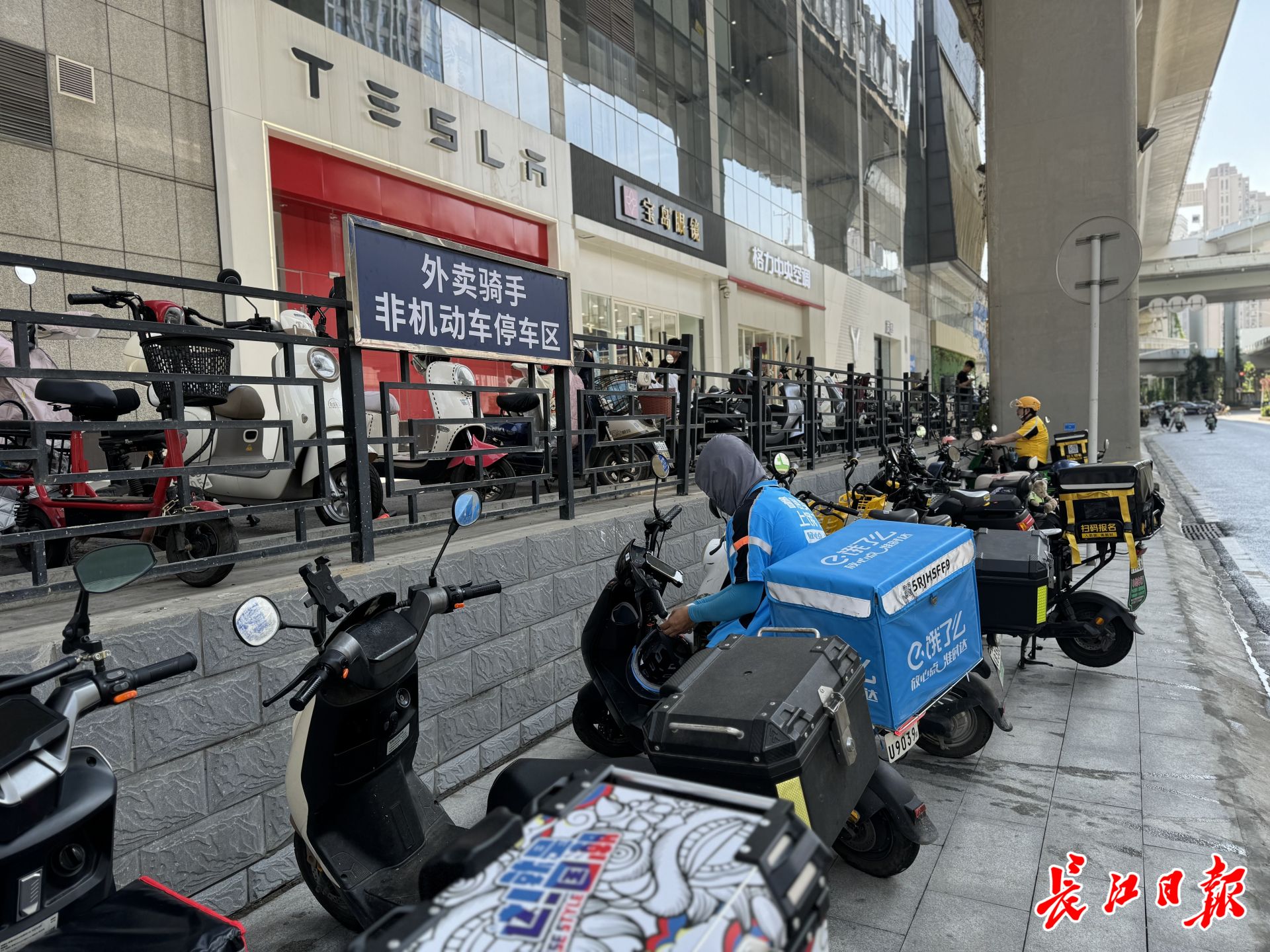 6月3日上午9时许,长江日报记者来到王家湾,沿龙阳大道步行,然后右转至墨水湖北路,只见位于摩尔城沃尔玛一侧已经有外卖小哥在配送各家早餐。“我们以前都是把车停在马路上,现在有了外卖骑手专属停车区,比原来方便、安全了。”多名外卖骑手对记者说。