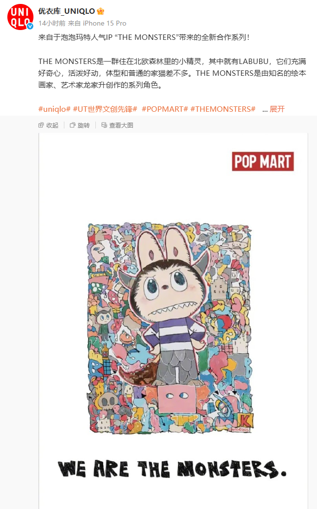 优衣库官宣和Labubu联名,上市销售时间为8月29日