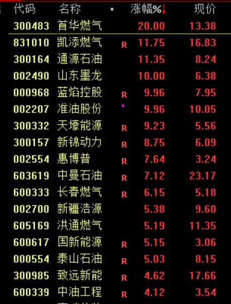 油气股逆势大涨,山东墨龙、准油股份、首华燃气等多股涨停。