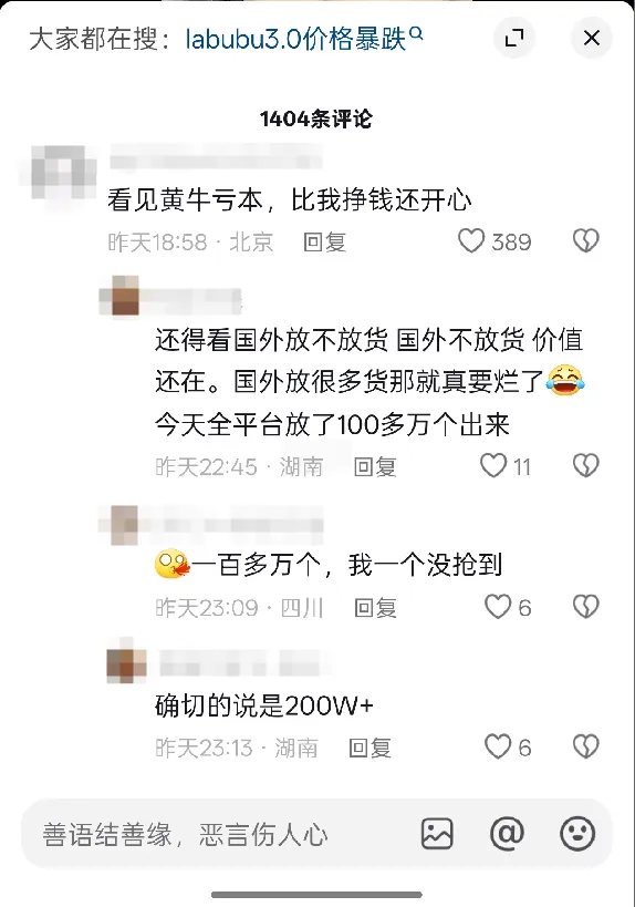 也有网友预测此次泡泡玛特补货量“可能是100多万个”“也可能是200多万个”。