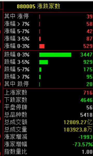 市场共716只个股上涨,39只个股涨停,4646只个股下跌。