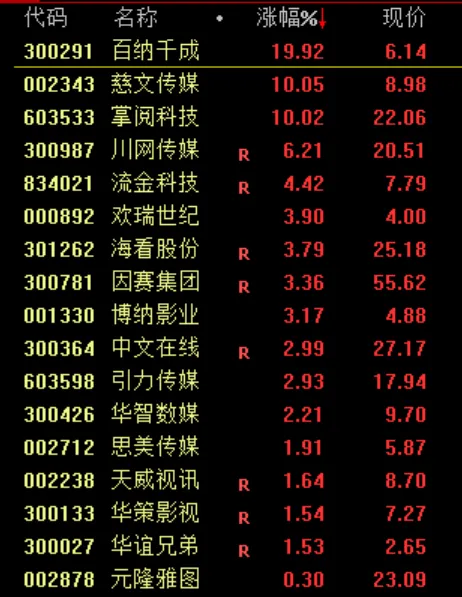 短剧概念股午后走强,百纳千成、慈文传媒、掌阅科技封板。