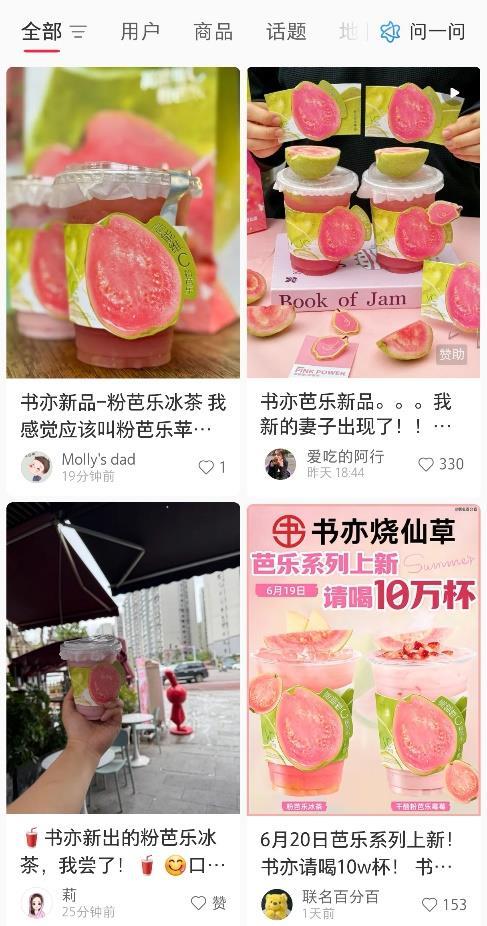 “味道很独特,芭乐搭配柠檬,第一口就能感受到夏日的清爽!”在书亦烧仙草春熙路总府店,顾客李小姐惊喜地说。据书亦店员介绍,这款“粉芭乐冰茶杯”以广西、福建盛产的红心芭乐为主要原料,采用粉芭乐与香水柠檬果香、山茶花香乌龙茶底的复配口味,形成了层次分明、口感丰富的花果茶韵四重风味,清爽香甜。此外,本次上新的2款芭乐饮品搭配粉嫩嫩、高饱和度的配色,狠狠把握“多巴胺”概念,主打夏日轻盈活力,带来味蕾和精神双重快乐,也让消费者纷纷晒图打卡。目前在小红书平台上,“芭乐饮品”相关的浏览量高达1775万,相关笔记超6万篇,书亦与喜茶、霸王茶姬成为提及最多的品牌TOP3。