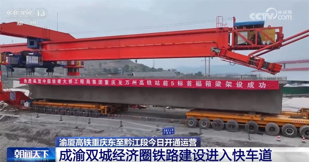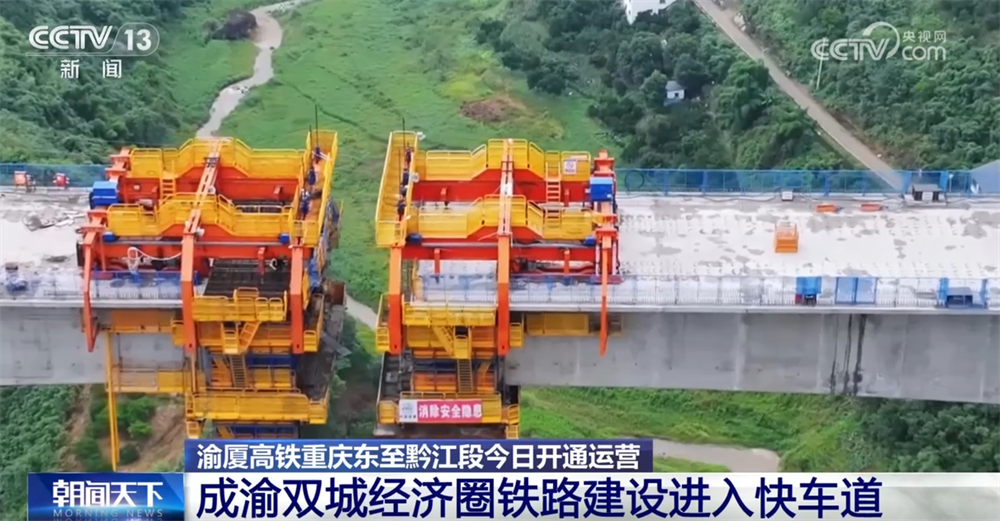 在我国“八纵八横”高铁网包(银)海、京昆双通道的重要组成部分的渝万高铁建设现场,蔡家沟双线特大桥正在加紧施工,桥梁已经进入主跨连续梁合龙施工的冲刺阶段。