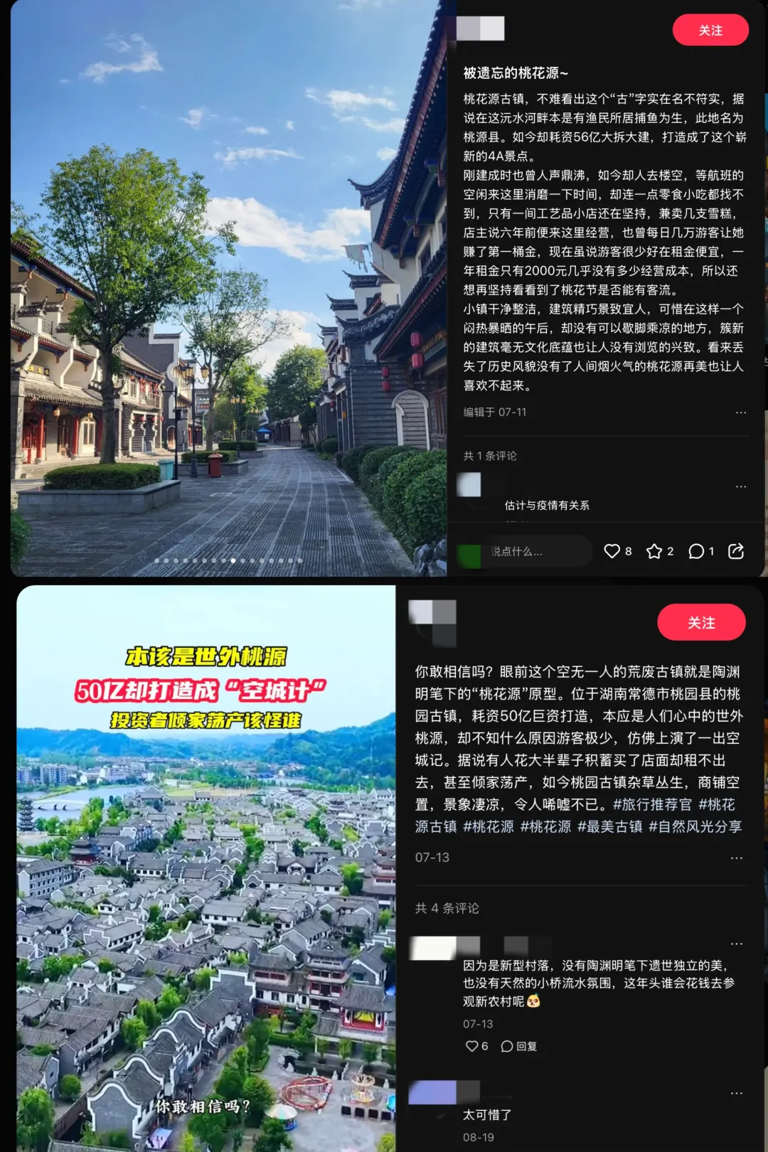 社交平台上,也有网友发帖吐槽其他门可罗雀的古城古镇。